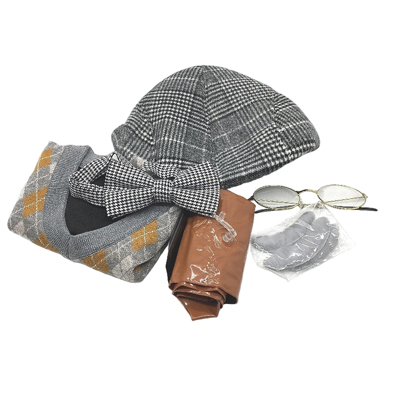 Kids Size 5-7Years Vest measurments: 47L x 35cm W Includes inflatable cane, glasses, vest, bowtie & hat