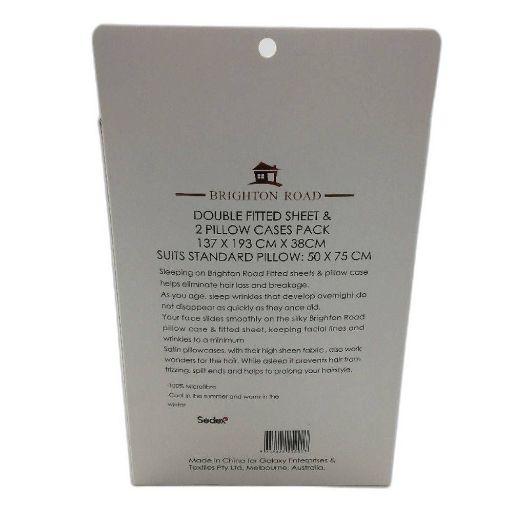 Brand New Fitted Sheet Pack Includes: 1 x Fitted Sheet 137 x 193 x 35cm 2 x Standard Size Pillowcases 50 x 75cm