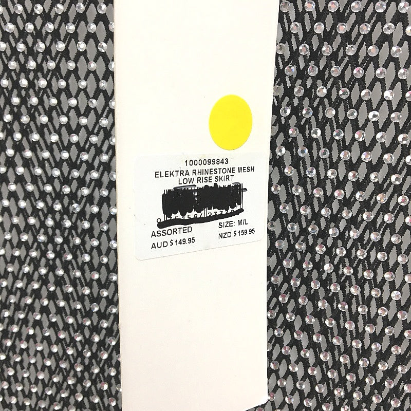 New with tags. Item has been debranded as per retailer request. Debranded items are either markered swing tags and/or material label. Slightly dusty from warehouse storage. Confirmed single rhinestone missing, may be missing more as this is a delicate item, but it seems as to be mostly intact. Product # 1000099843 Measurements(cm) Waist to bottom length: 97 Across waist: 33