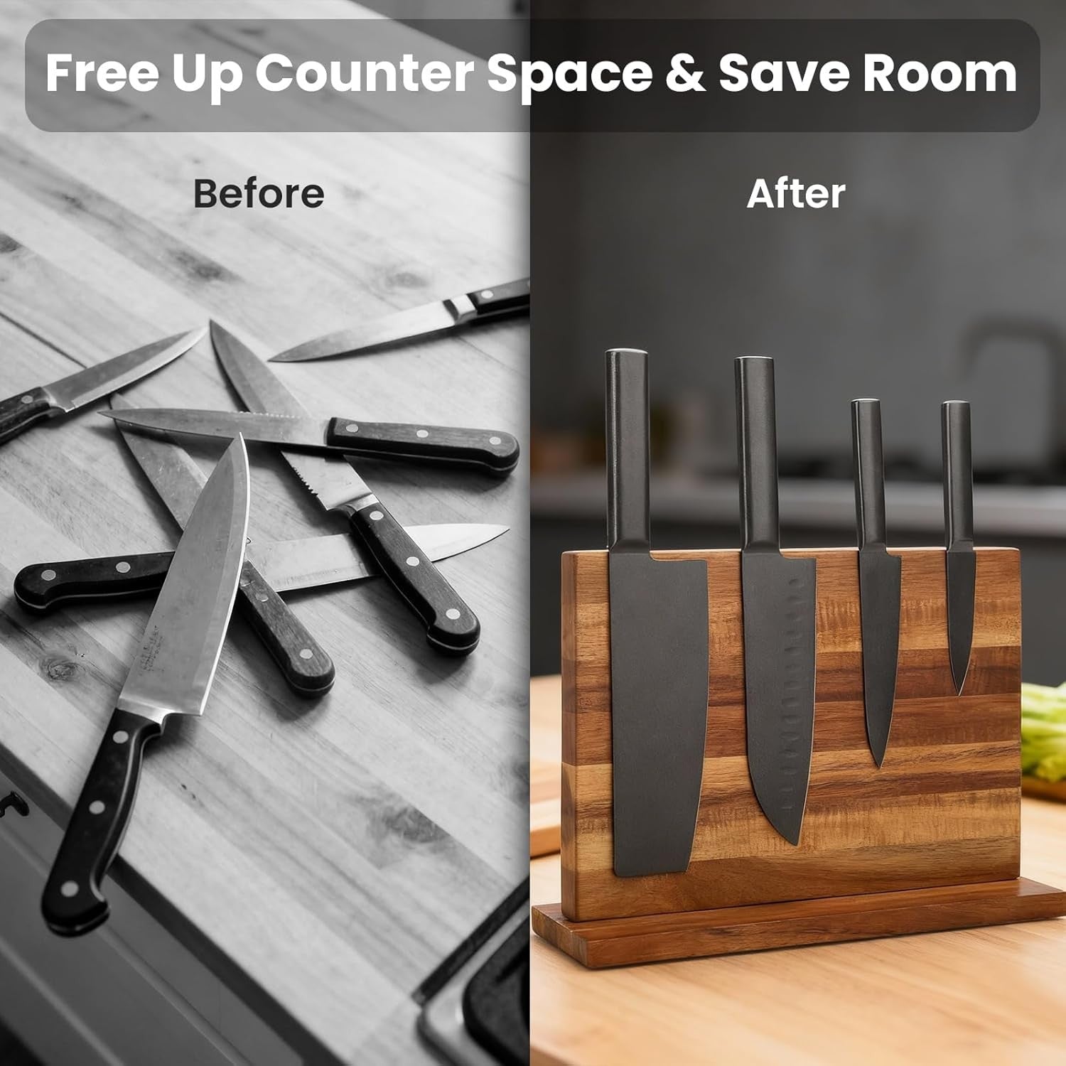 Discover the perfect blend of functionality and style with our Solid Wood Magnetic Knife Block. Designed for multipurpose storage of kitchen knives, this magnetic knife holder features strong magnets on both sides, ensuring your knives are always within reach while enhancing your kitchen decor.