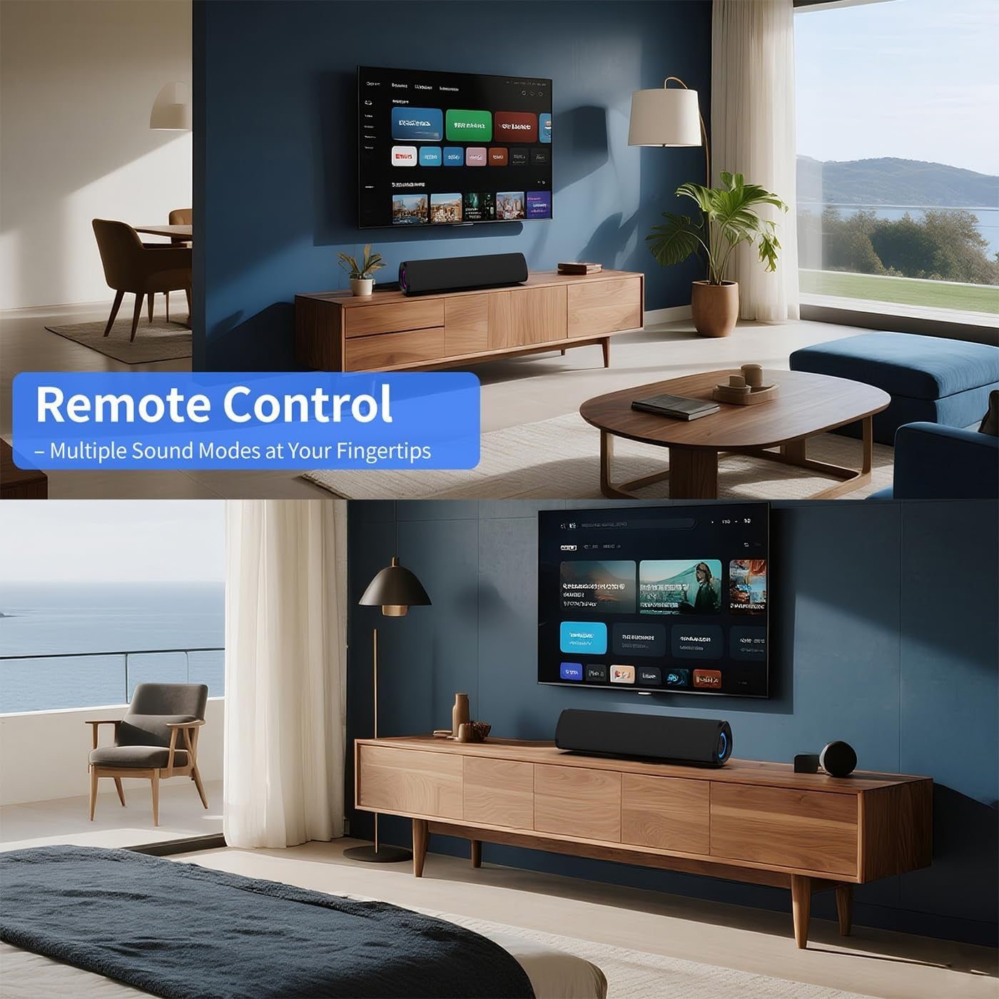 Experience powerful, room-filling audio with our Sound Bar for Smart TV, designed to transform your TV into a complete home theater system. With sleek aesthetics and a compact design, this 50W Bluetooth soundbar seamlessly integrates with your TV, PC, and mobile devices, enhancing your entertainment experience.