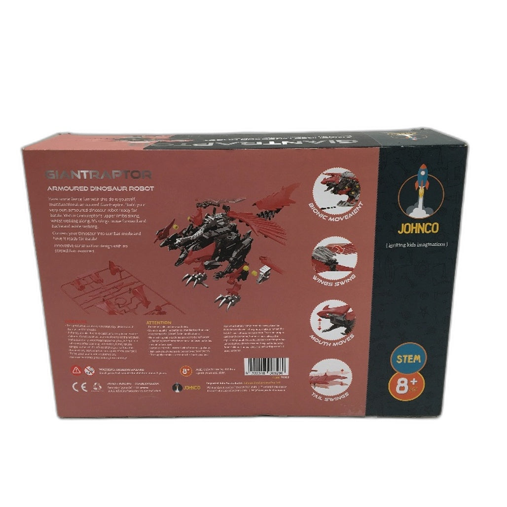 - JohnCo Giantraptor BYO Armoured Dinosaur Velociraptor Robot for Ages 8 Yrs Red&Black - Durable, Lightweight, Fast Shipping NEW