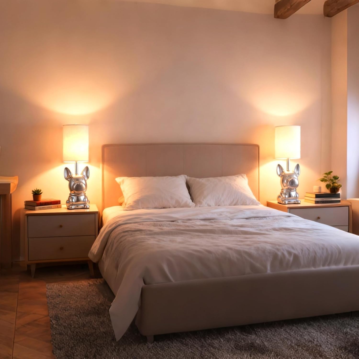 Elevate your home décor with this Set of 2 Ceramic Table Lamps, featuring an adorable puppy design that adds a playful yet elegant touch to any space. Perfect for bedrooms, nurseries, and living rooms, these cute bedside lamps are ideal for kids and family spaces. The included energy-efficient 4W LED bulb ensures warm, flicker-free illumination for a cozy ambiance.