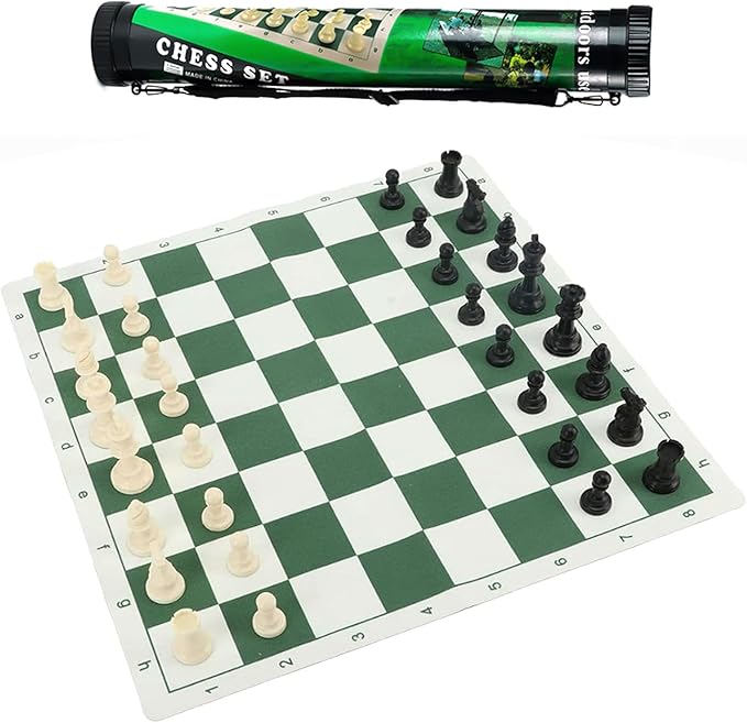 New with carry bag, bag was opened for inspection. Has strong manufacturing smell, pieces loose inside tube. Does not come with spare queen pieces.