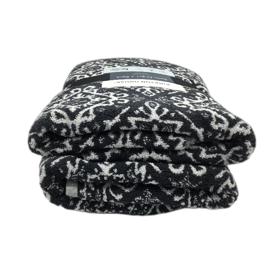 - Kirkton House 2 Piece 100% Cotton Large Black White Pattern Bath Sheet Set NEW