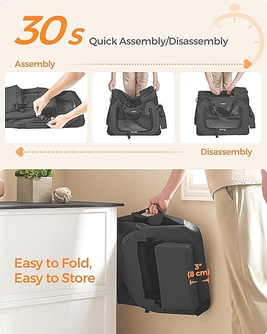 - Feandrea Black Collapsible Pet Carrier Soft Dog Travel Crate Indoor Outdoor NEW