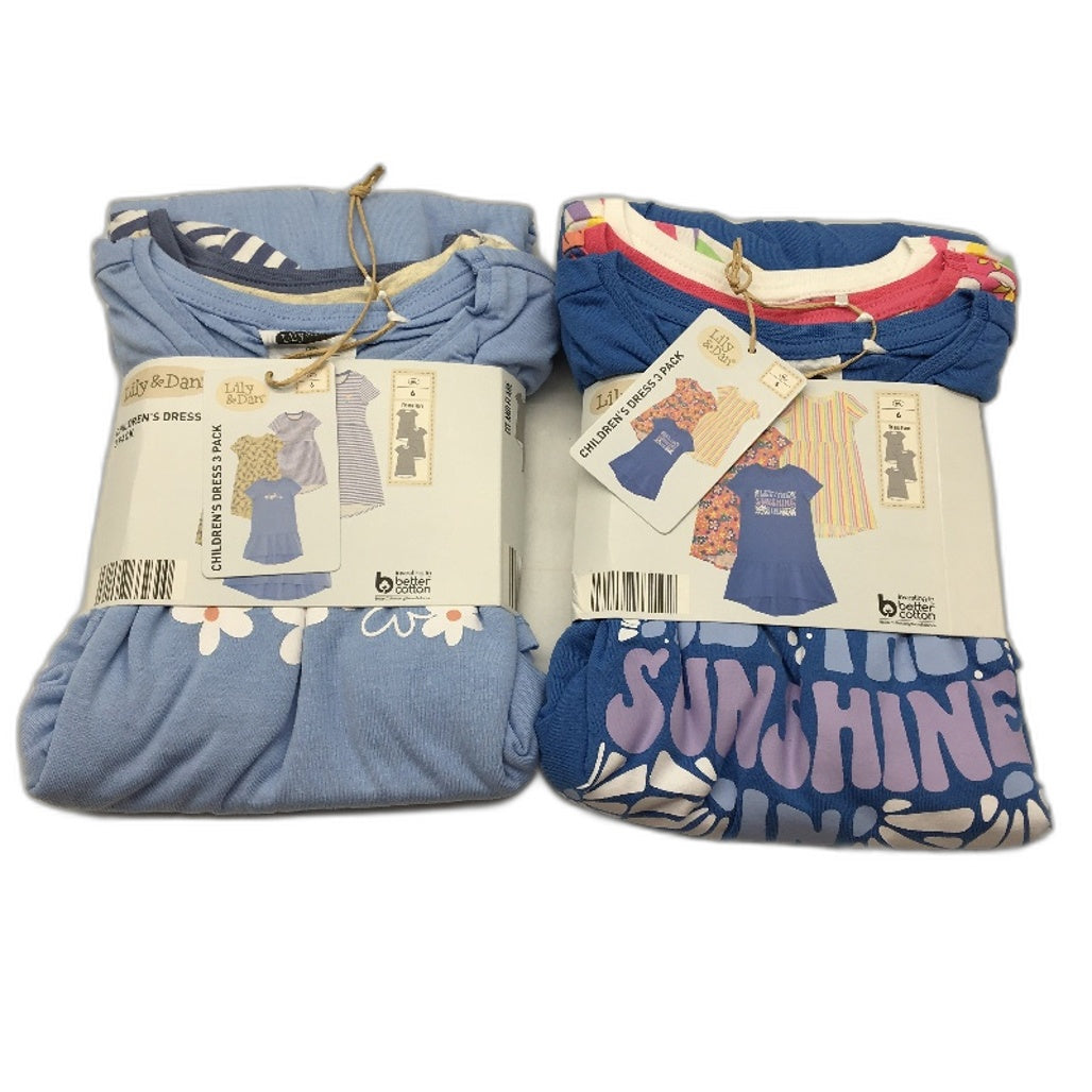 - Lily & Dan 2 x 3Pks Fit & Flare 100% Cotton Mutlicoloured Girls Dresses Sz 6 NEW