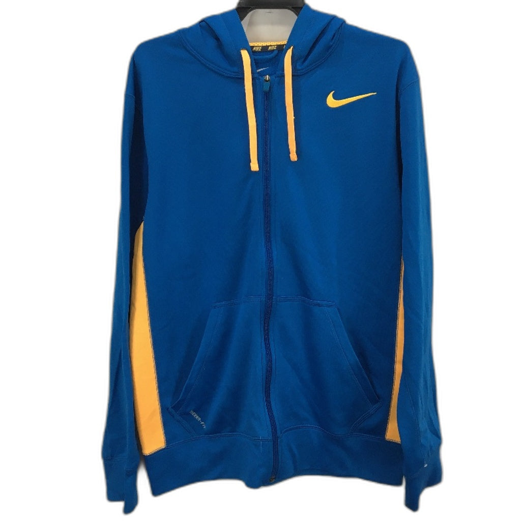 - Nike Therma Fit Blue And Yellow Fleece Hooded Pocket Full Zip Jacket Mens Size S