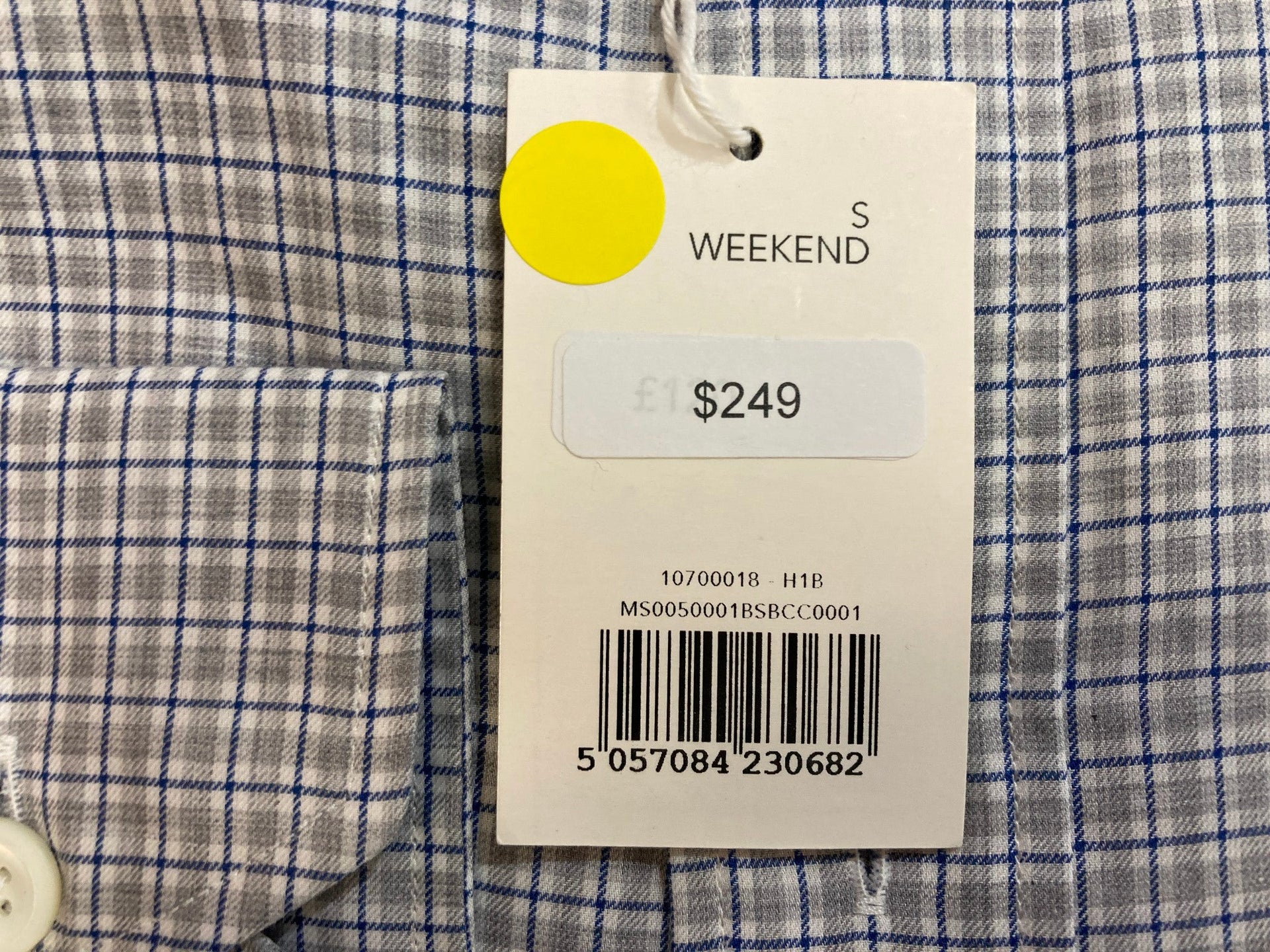 - Thomas Pink Weekend Tailored Shirt Grey/Blue Check Men Sz S NEW