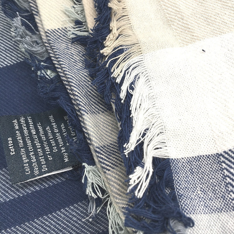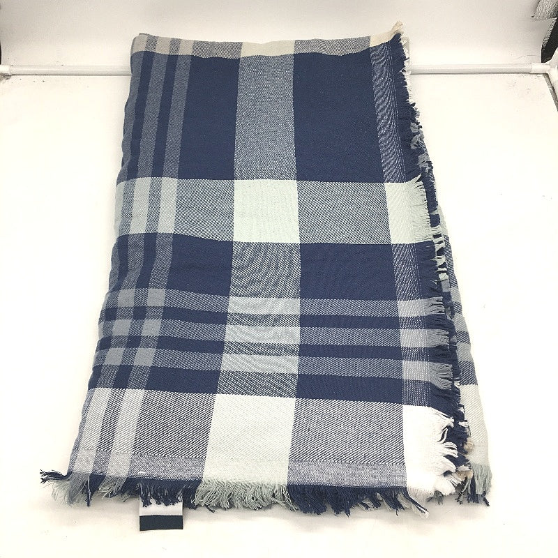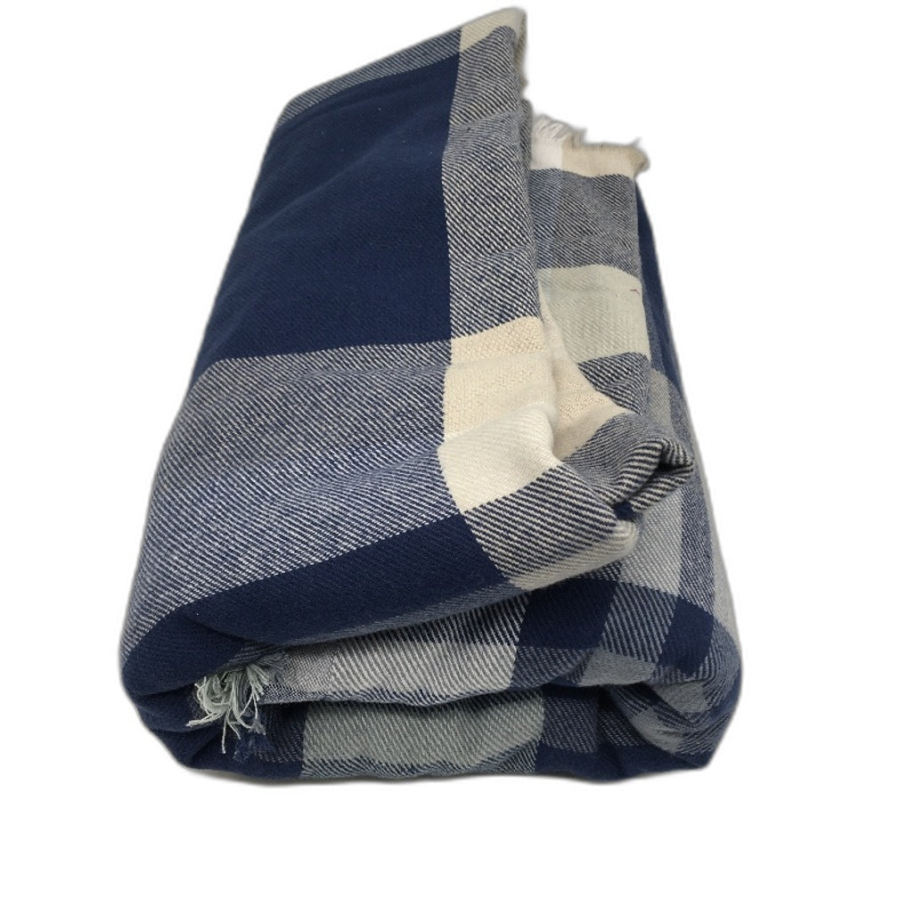 - Kirkton House Soft Cotton Lightweight Navy Tan Check Throw Blanket 250cm NEW