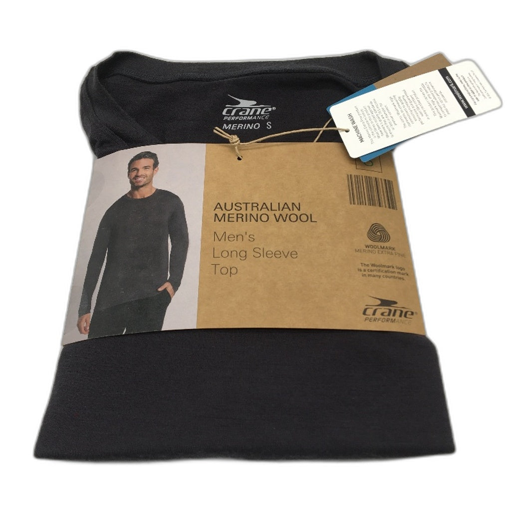 - Crane Performance 100% Merino Fine Wool Grey Long Sleeve Top Mens Size S NEW