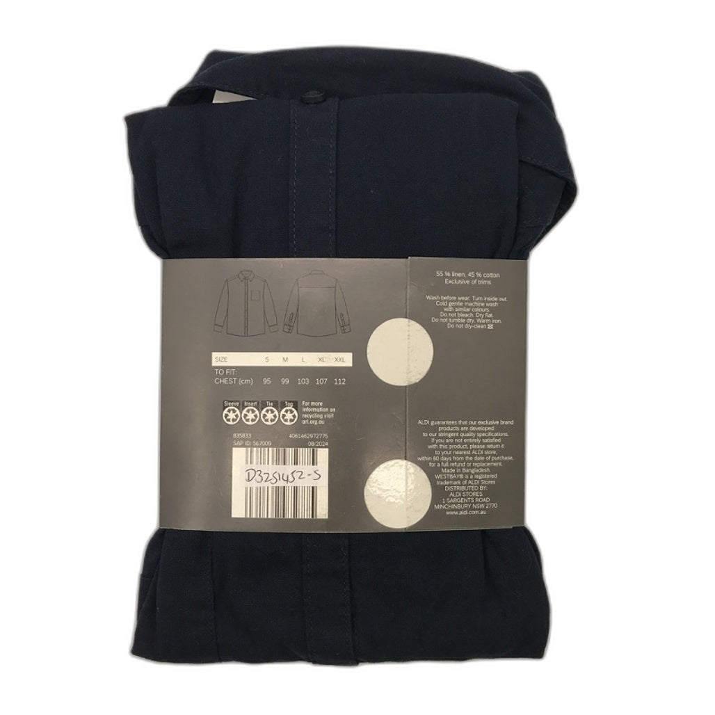 Westbay Light And Cool Linen Blend Navy Blue Long Sleeve Shirt Mens NEW