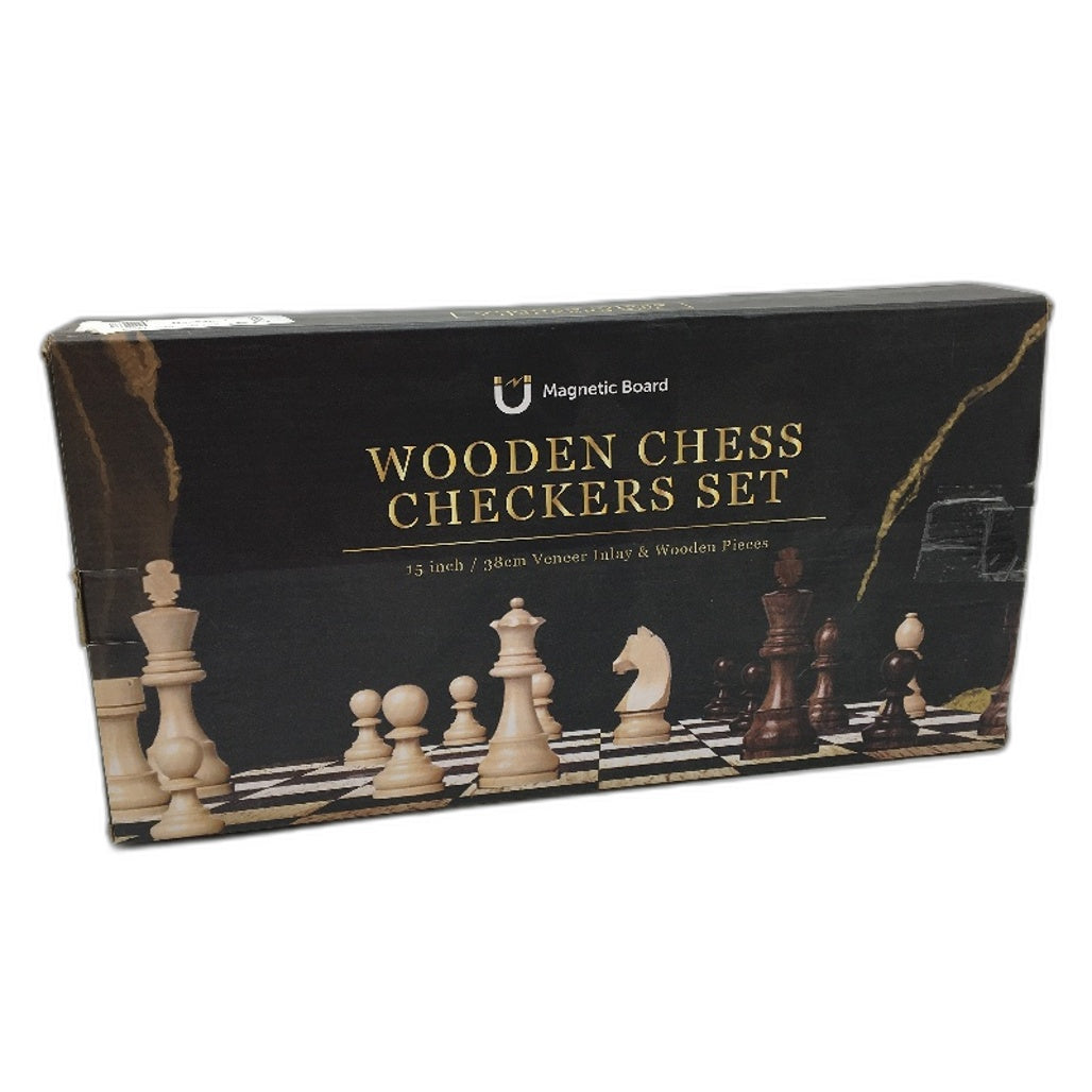 - Wooden Chess & Checkers Game Set Magnetic Board Foldable & Portable NEW