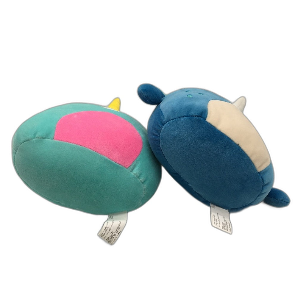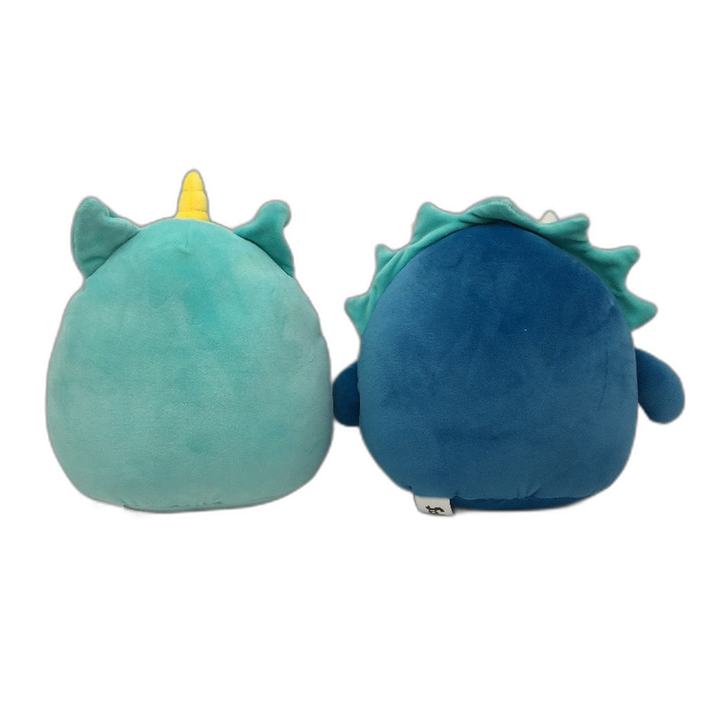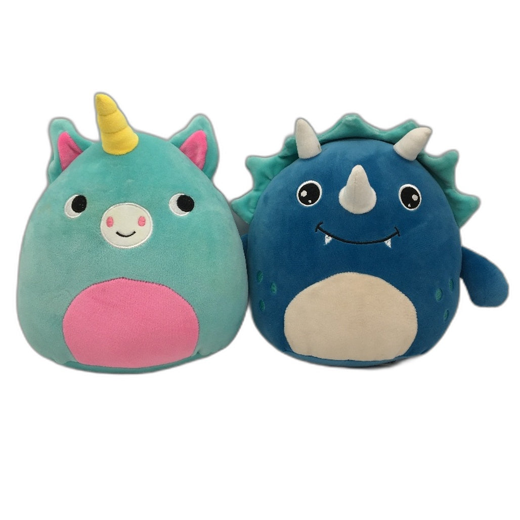 - 2 Pack Blue Dinosaur & Unicorn Rounded Soft Plush Toys Collectables Multicoloured - Polyester Durable Lightweight Design Squishees