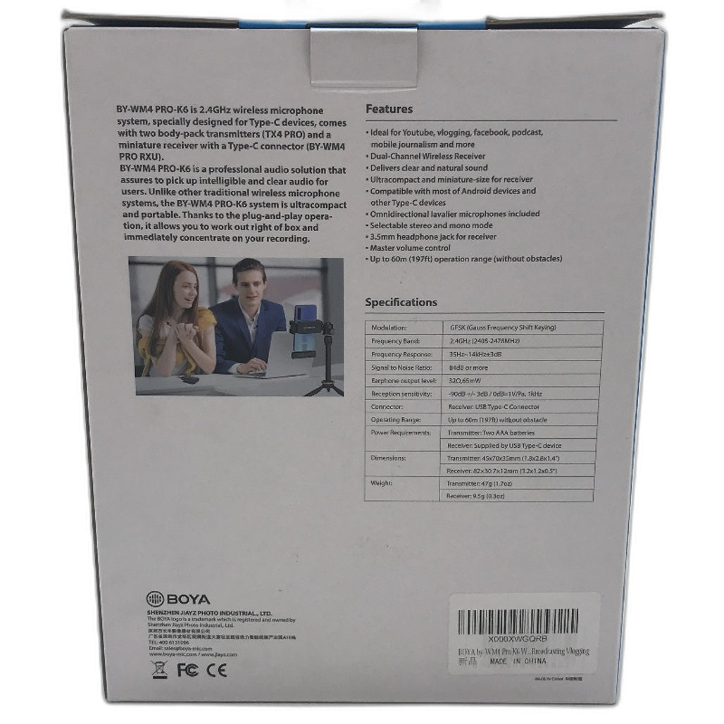 - BOYA 2pk BY-WM4 PRO-K6 2.4GHz USB-C Wireless Microphone System For Vlogging NEW