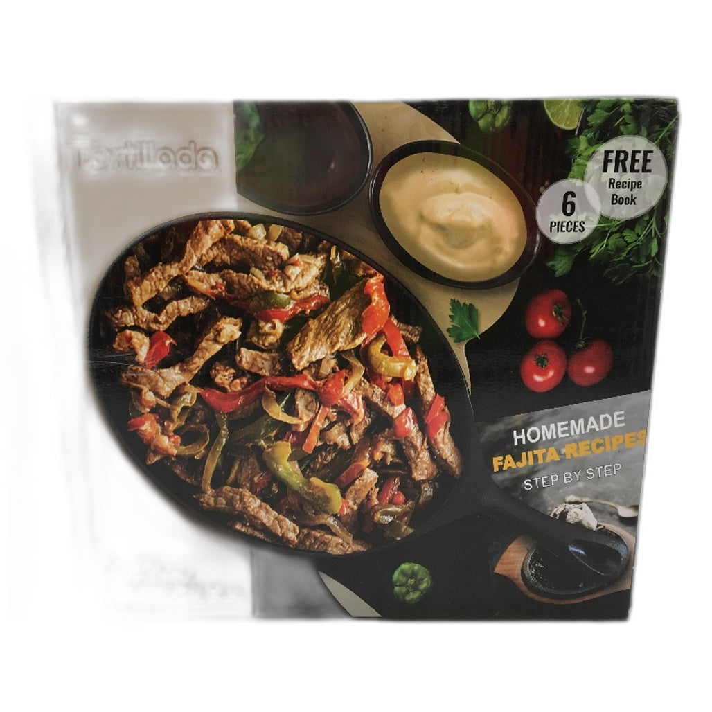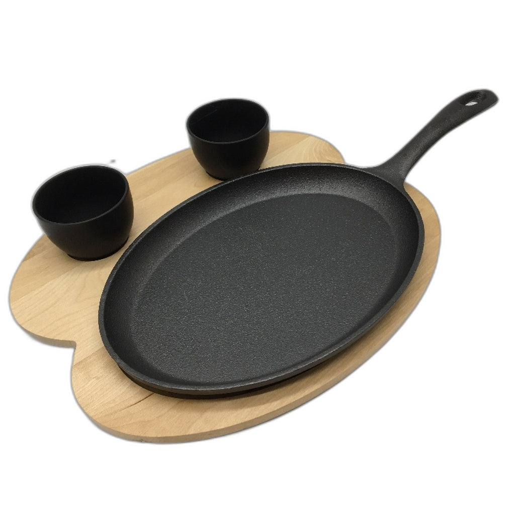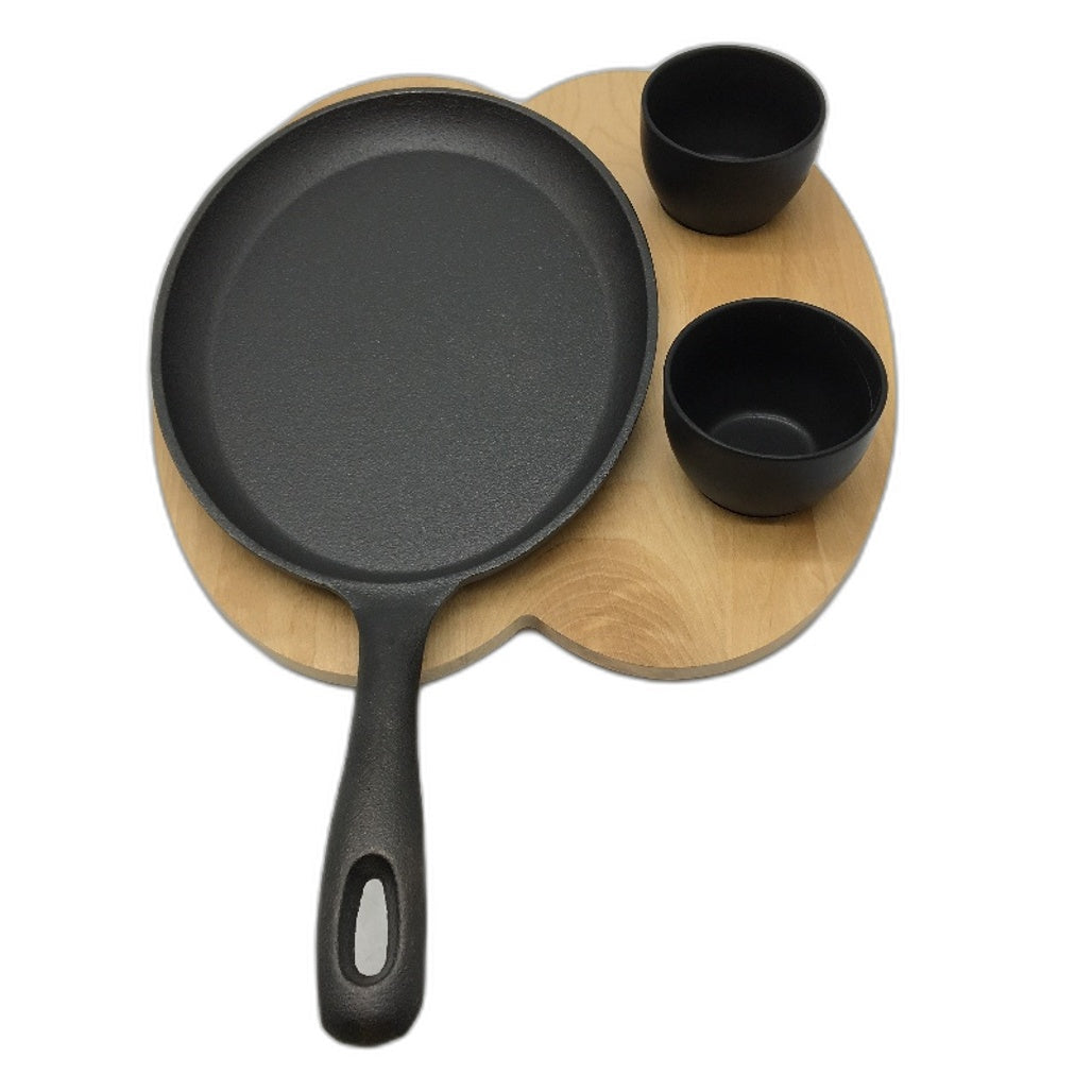 - Tortillada Cast Iron Fajita Grill Pan With Wooden Tray & 2 Ceramic Dip Bowls NEW