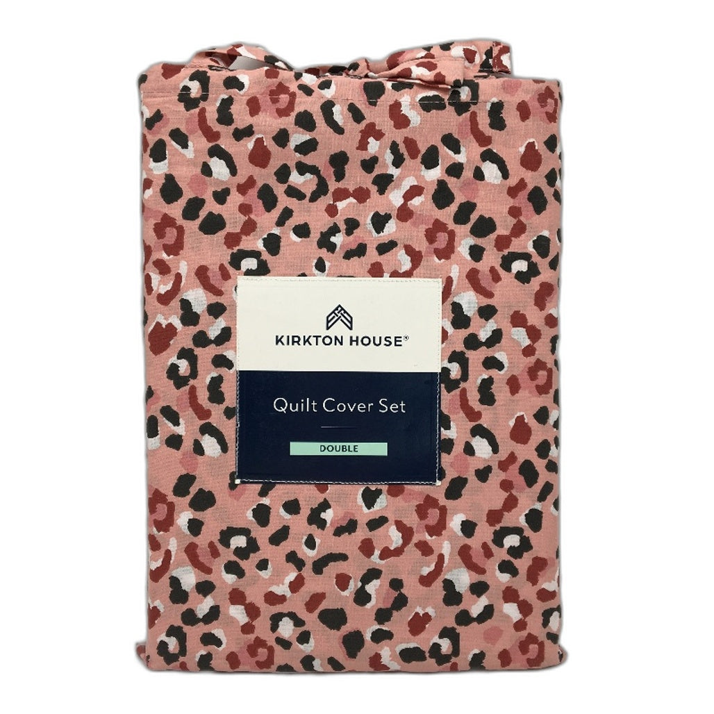 - Kirkton House Pink Leopard Print Themed Quilt Cover Set Double Bed NEW