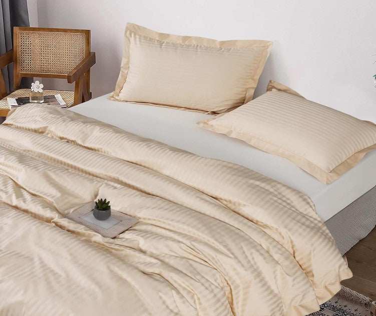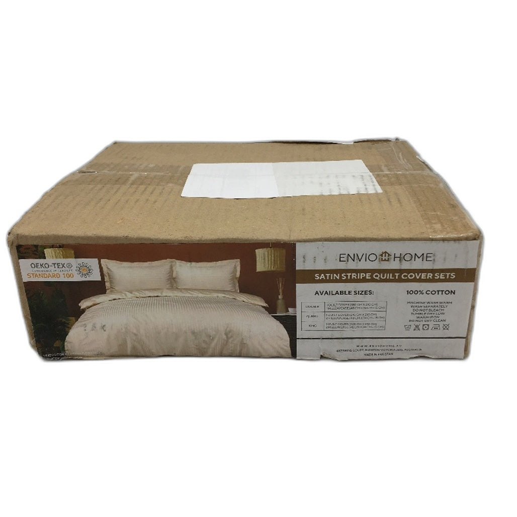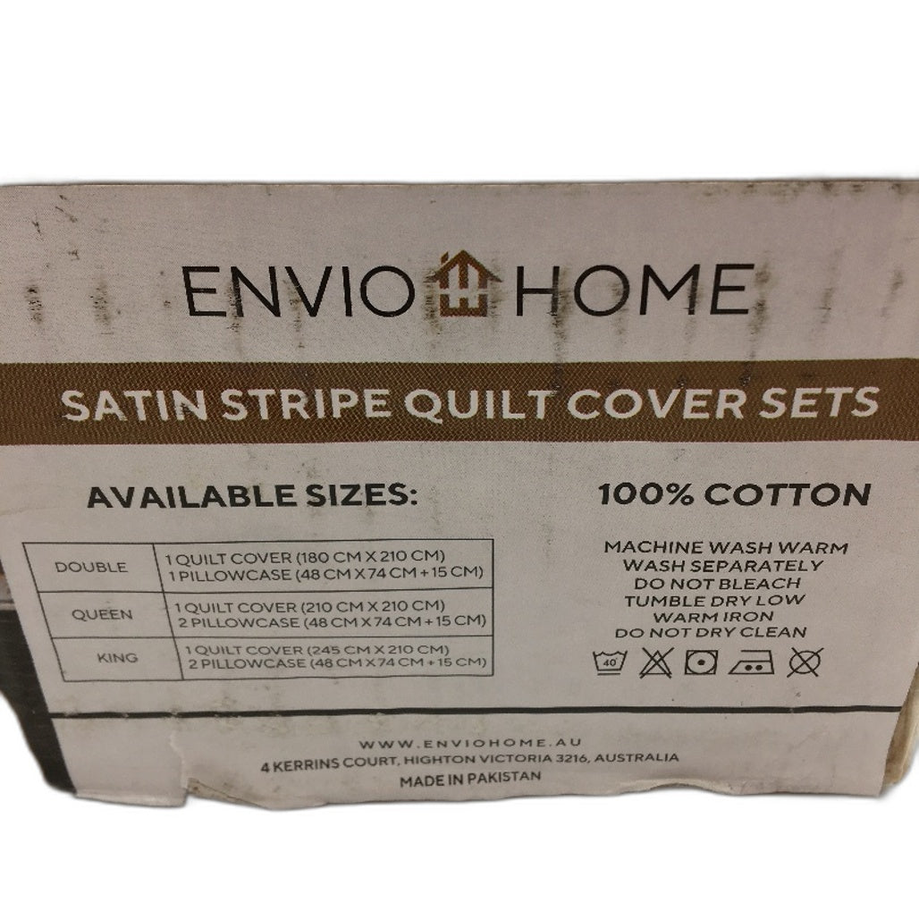 - Enviohome 100% Cotton Ivory Cream Stripe Doube Size Quilt Cover Set NEW