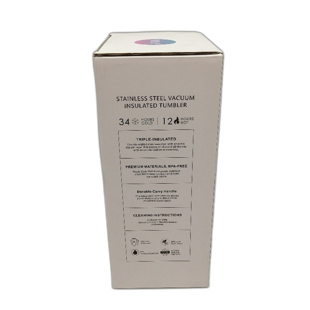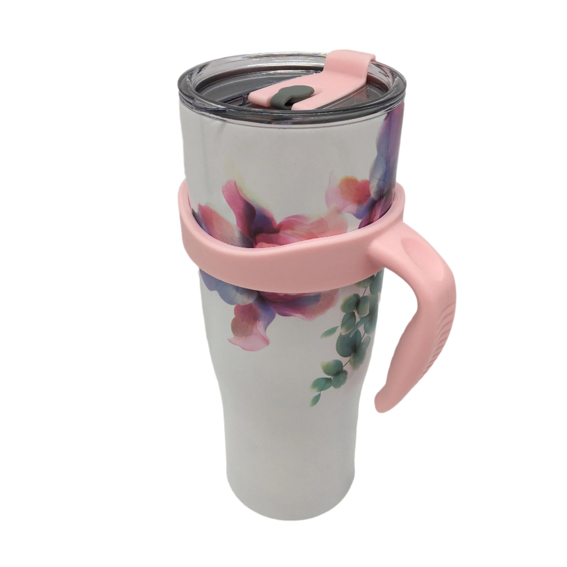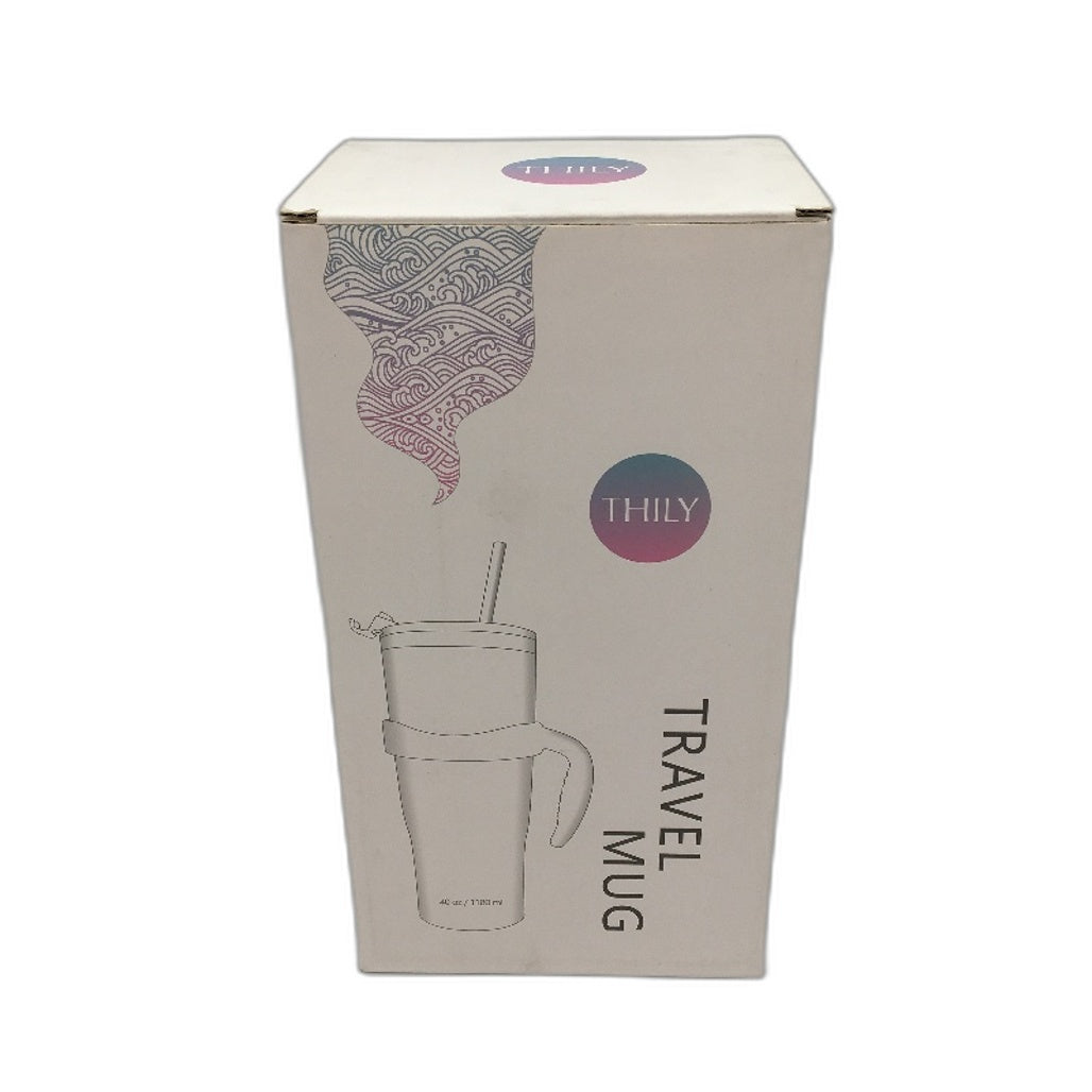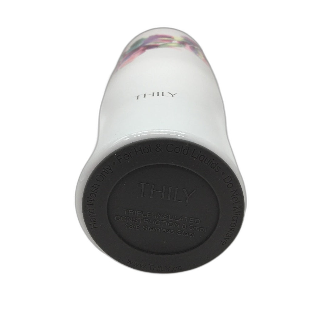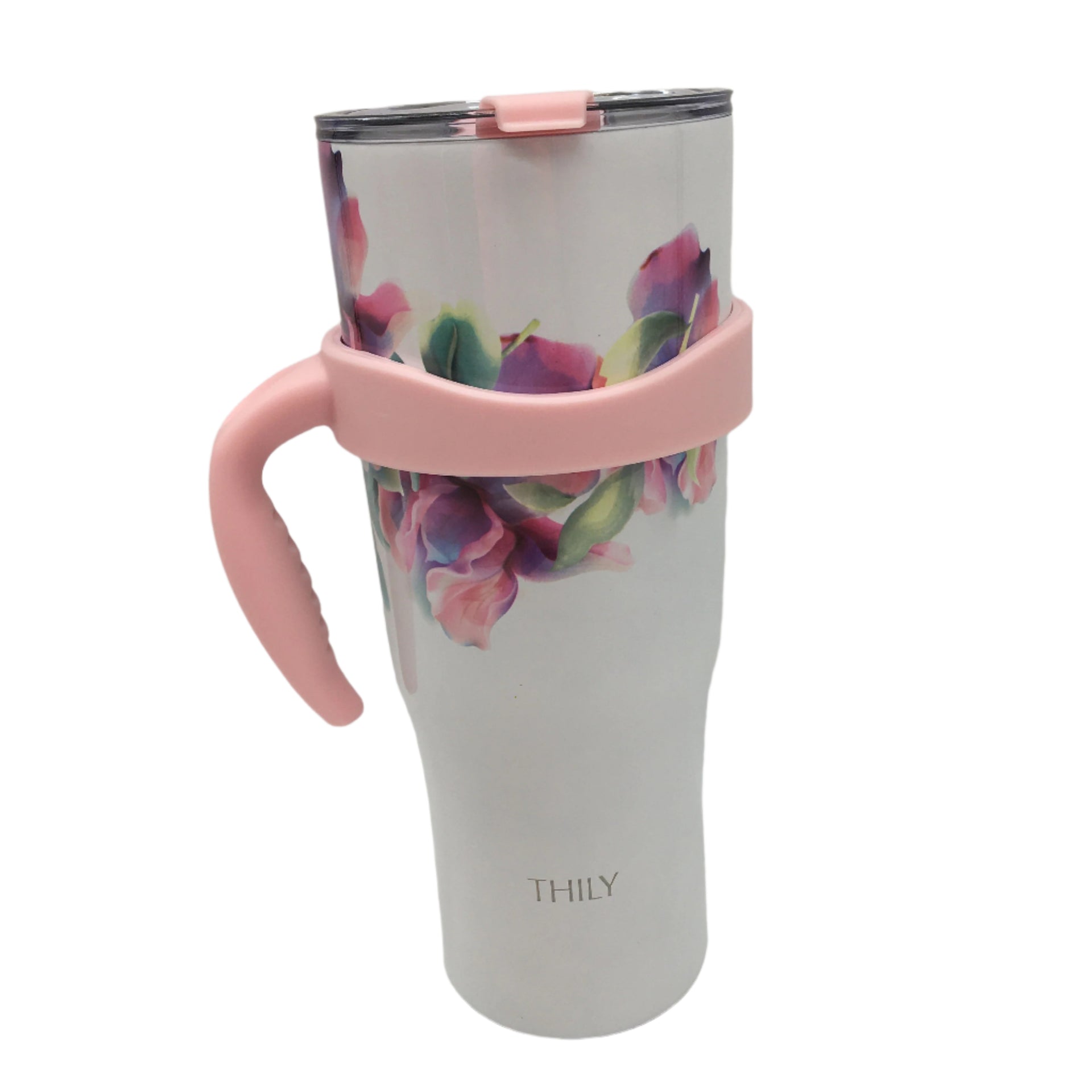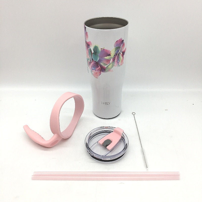 - Thily 1180ml Stainless Steel Pink Lillies Handle/Straw Travel Mug NEW