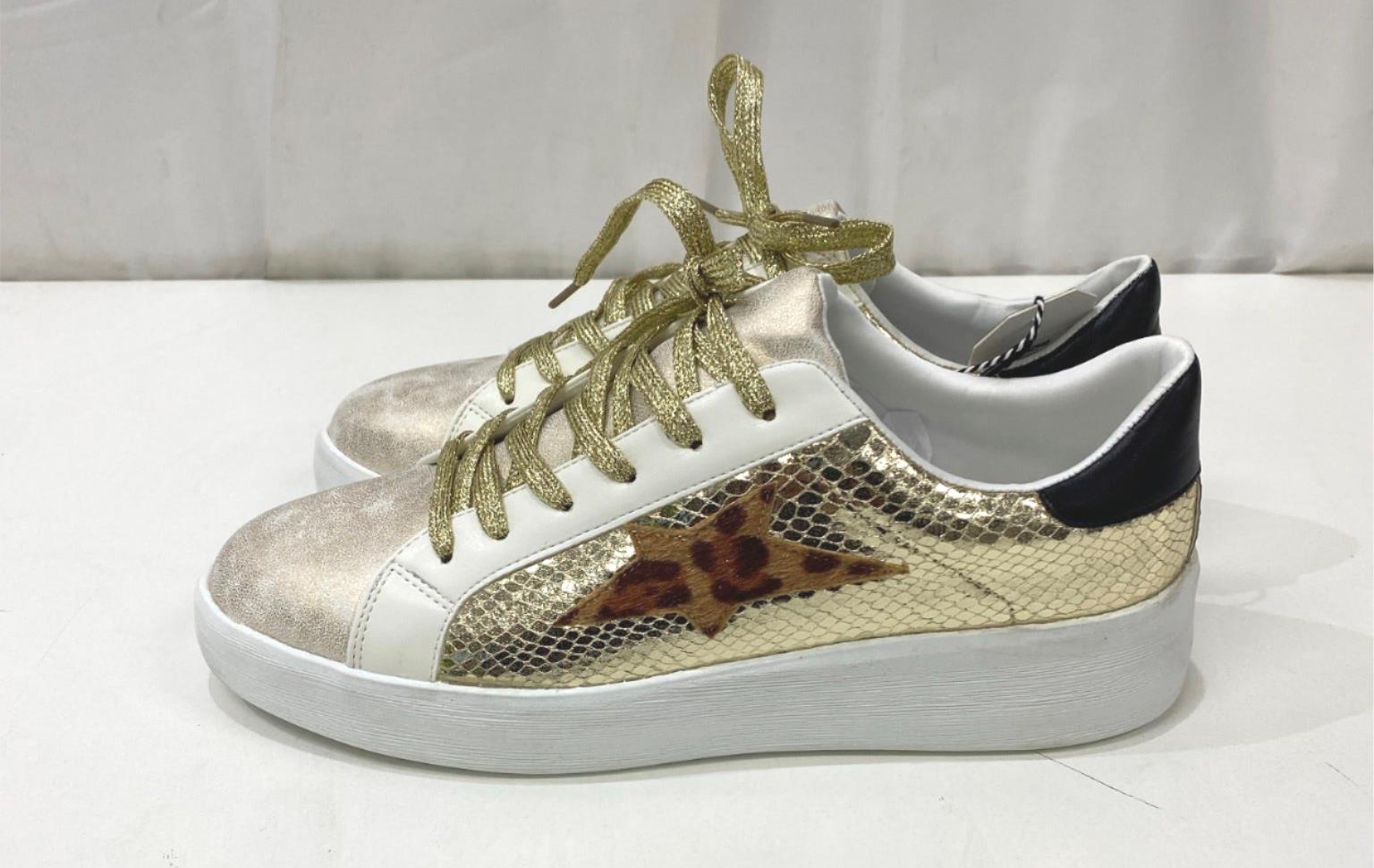 - Threadz Gold Metallic Star White Sneakers Ladies Various Sizes NEW