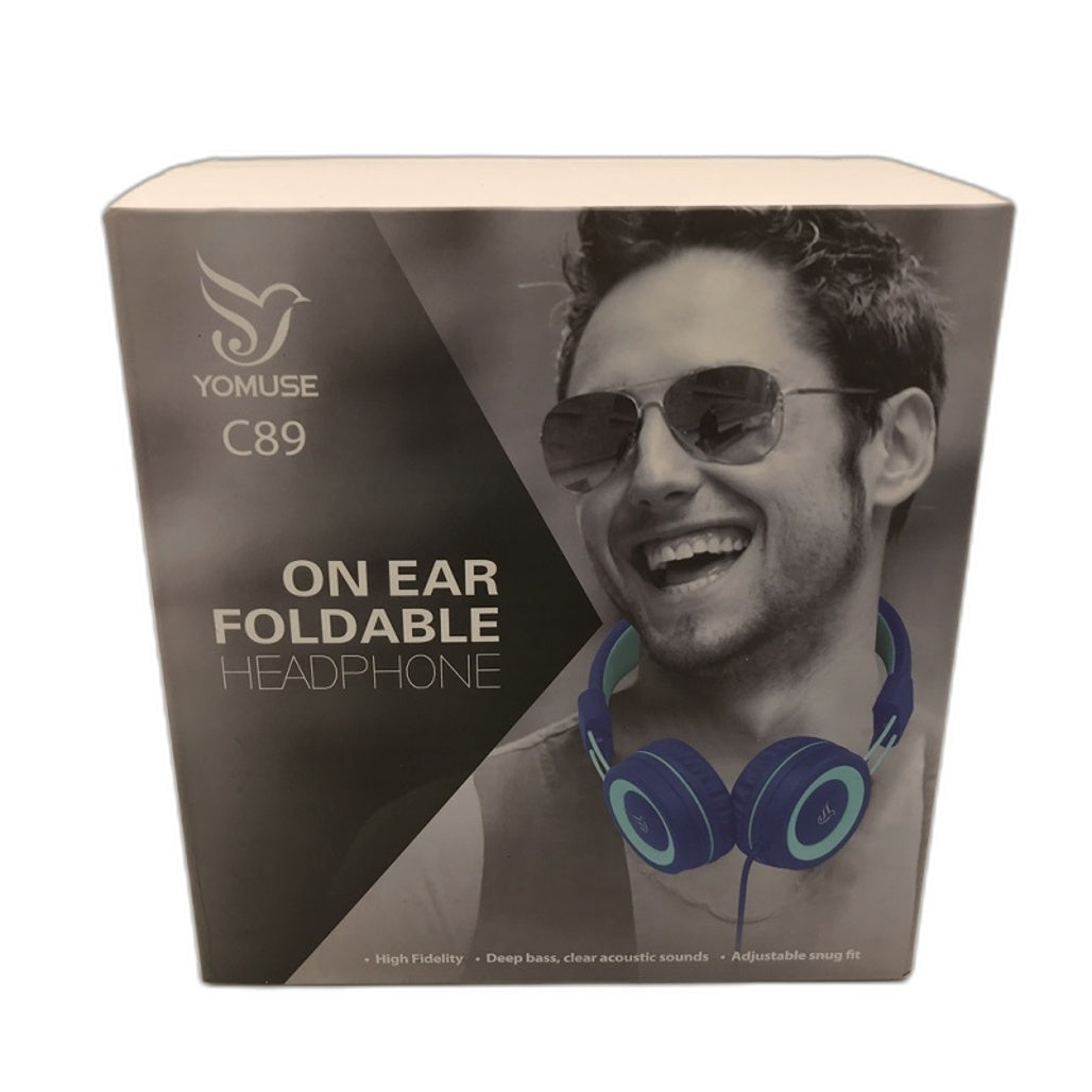 - Yomuse C89 Collapsible Wired On Ear Foldable Headphone Blue NEW