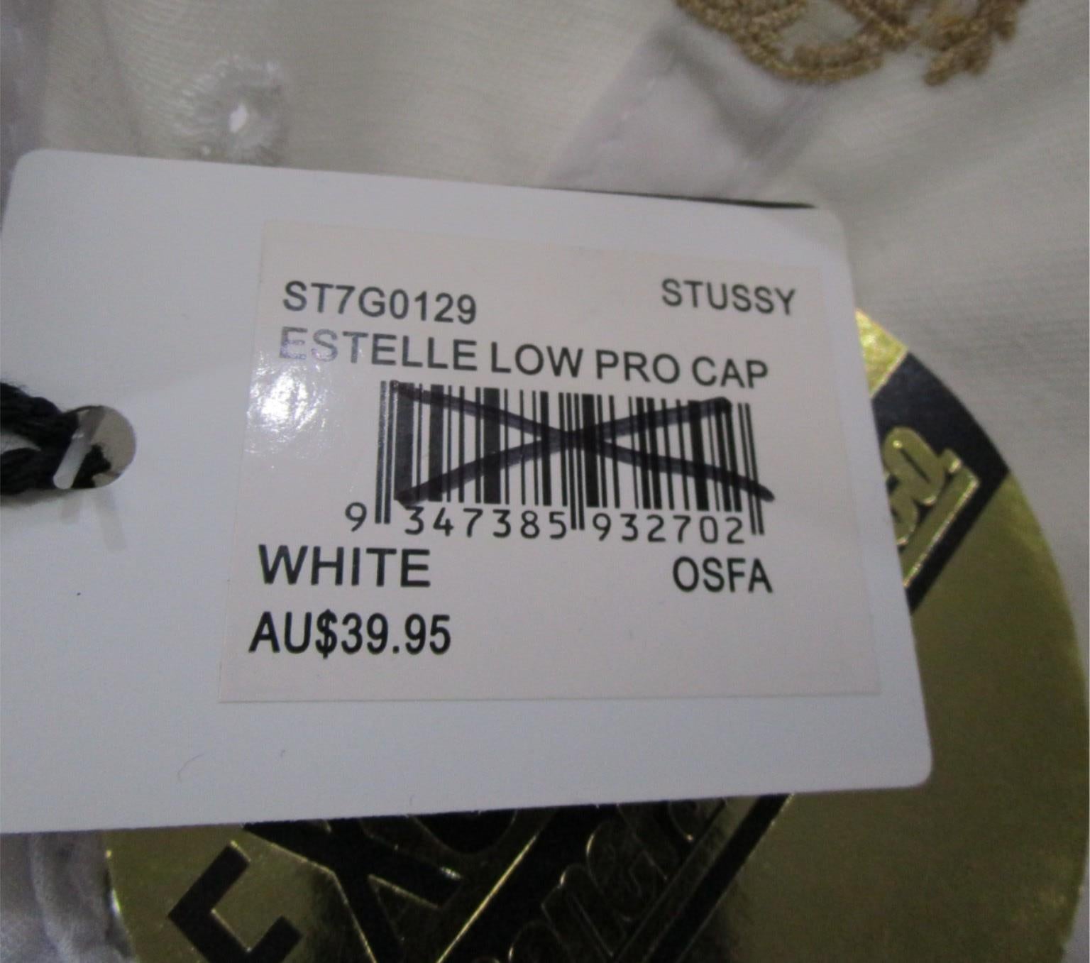 Elevate your style with this sleek Stussy Cotton embroidered Logo Estelle Low Pro Cap in crisp white. Perfect for both men and women, this unisex cap adds a modern touch to any outfit. Crafted from high-quality cotton, it’s durable, comfortable, and comes new with tags for a fresh, ready-to-wear experience.
