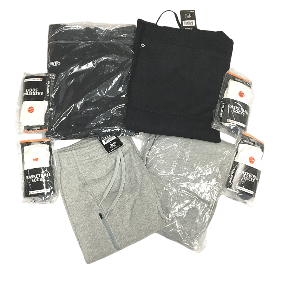 New with tags. 8 Piece Set includes: x2 AND1 Black Hoodies, x2 AND1 Grey Trackpants, x4 Small LTWT Socks
