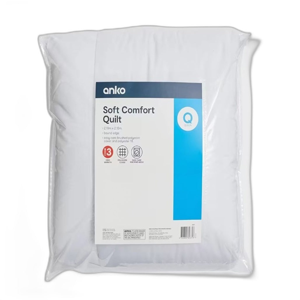 Brand New Barcode has marker through it Material: Polyester Dimensions/Size: 210cm (L) x 210cm (W) Heat level: 3 (high warmth) Queen bed Made in Australia Product weight: 2.20kg Colour: White Features Bound edge
