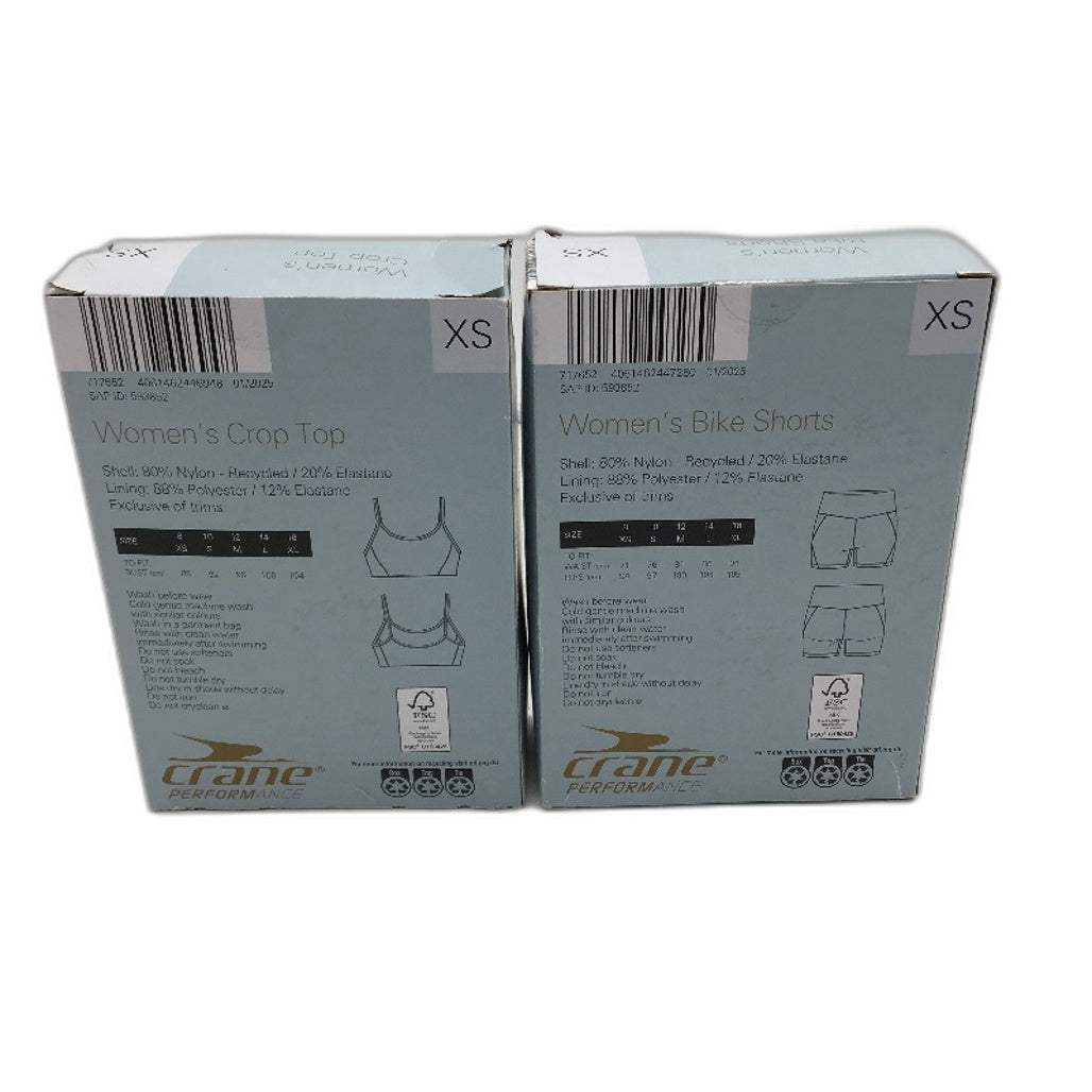 Crane Performance Green 2 Piece Activewear Crop Top & Bike Shorts Size 8 XS NEW