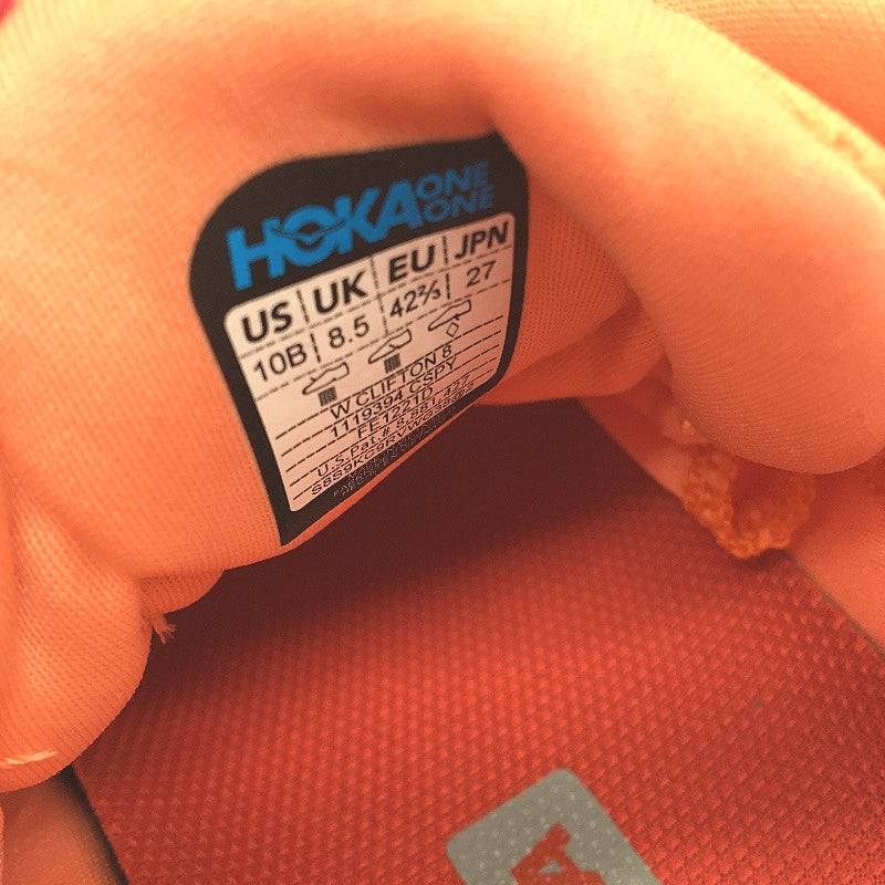 - Hoka One One Peach Orange Clifton 8 Running Sneakers Ladies Size US 10B EU42 NEW