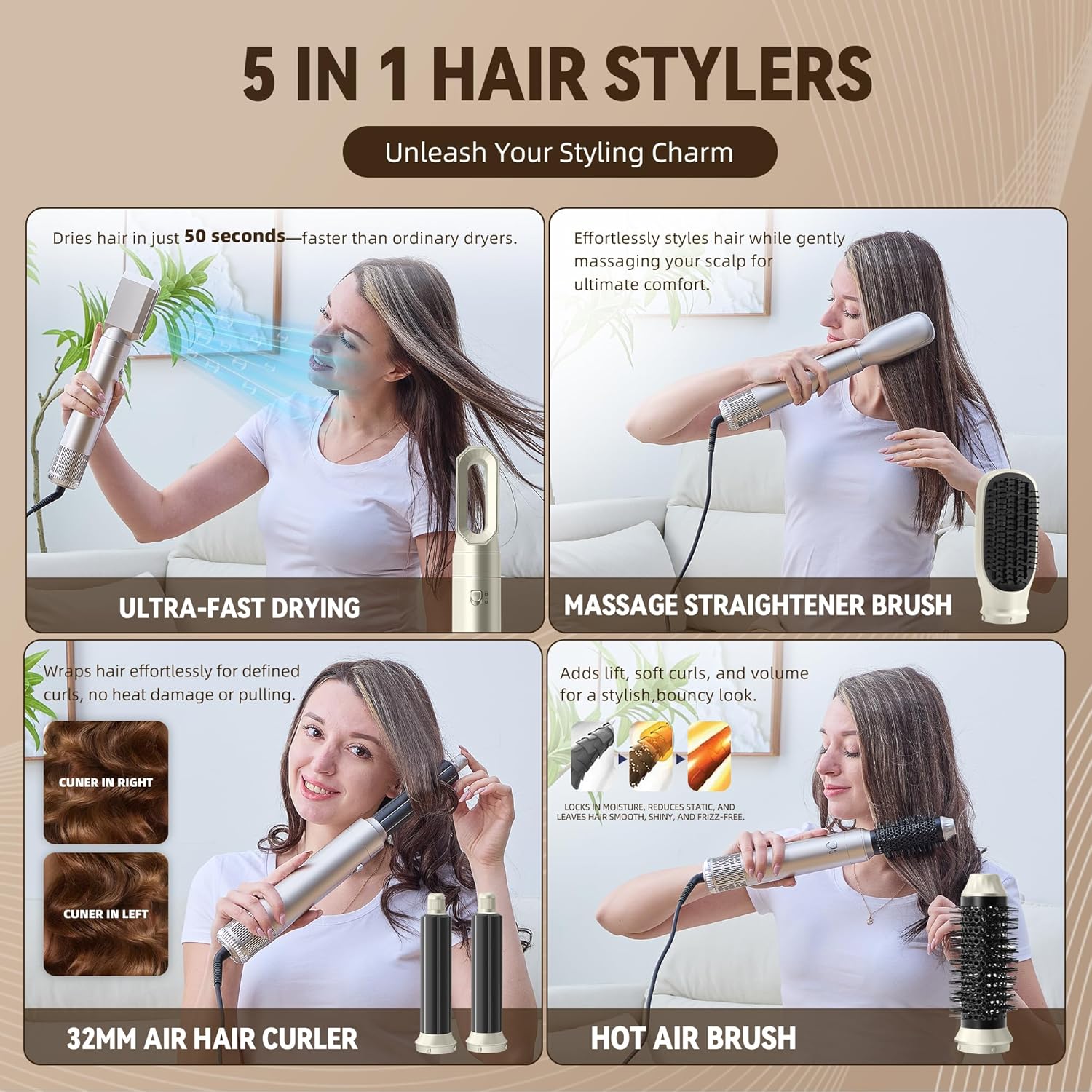 - Wubbo 5 in 1 Multifunctional Styling Low Noise Hair Dryer Brush in Silver NEW