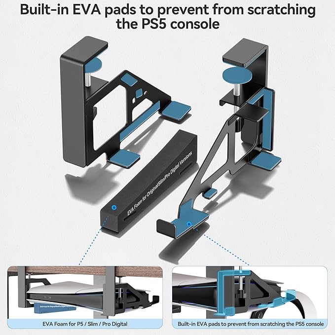 - P5 Slim Profile Under Desk No Drill Camp Console Mount in Black NEW