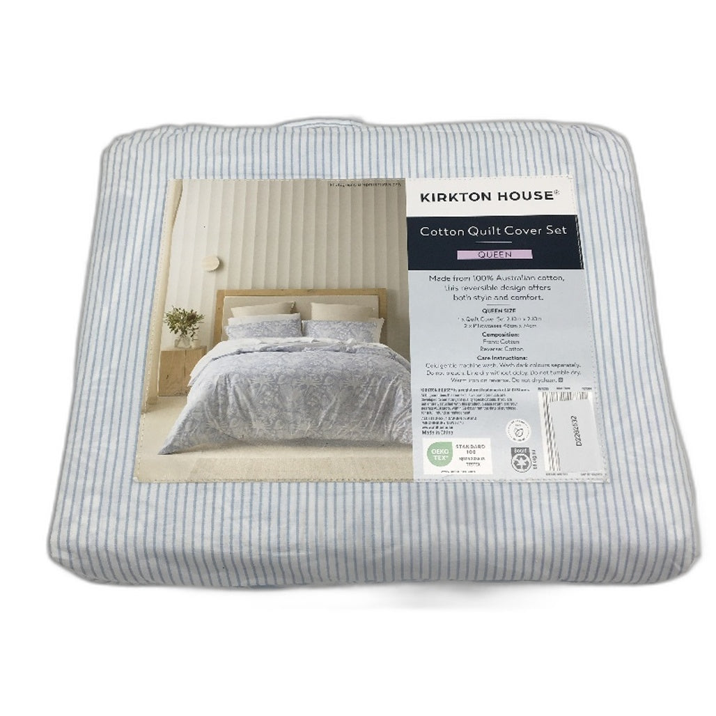 - Kirkton House Australian Cotton Blue Flora Print Quilt Cover Set QUEEN Bed NEW