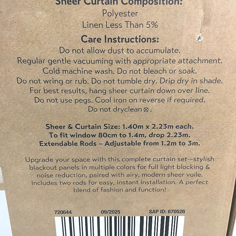 - Kirkton House Blockout & Sheer Curtain Set W/ Extendable Rods 1.4x2.23m NEW