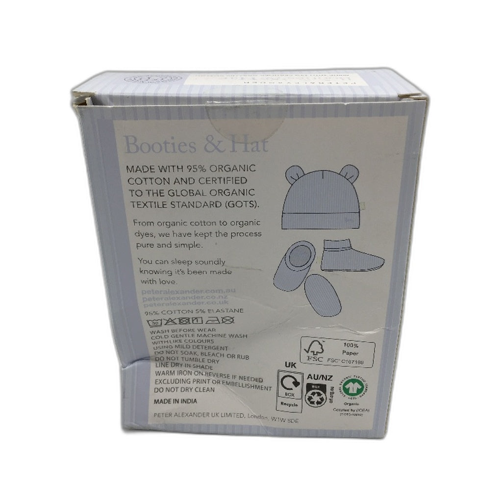 - Peter Alexander Organic Blue Beanie and Booties Set Babies Size 0-3 Months NEW
