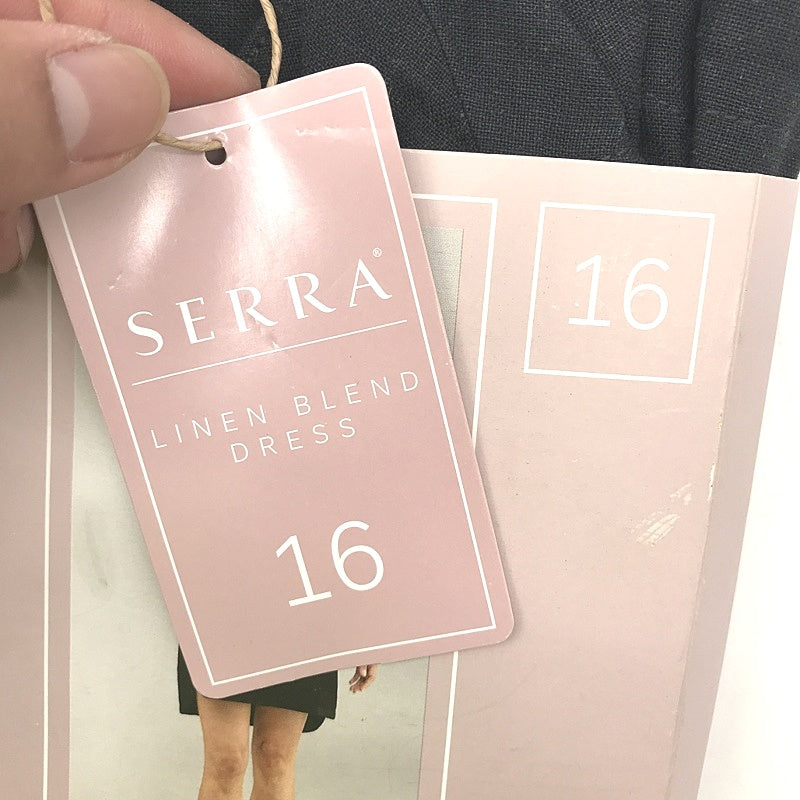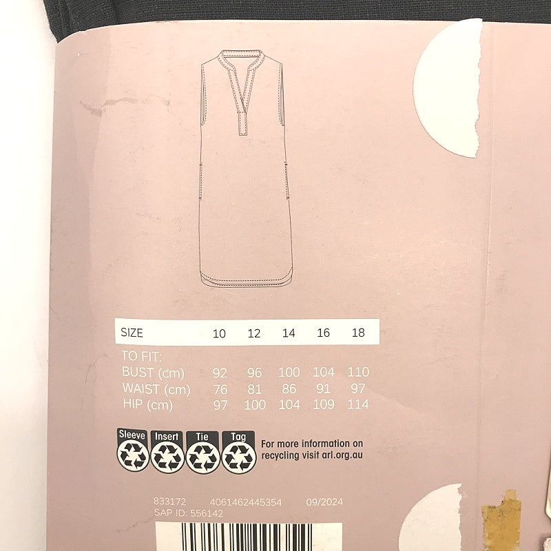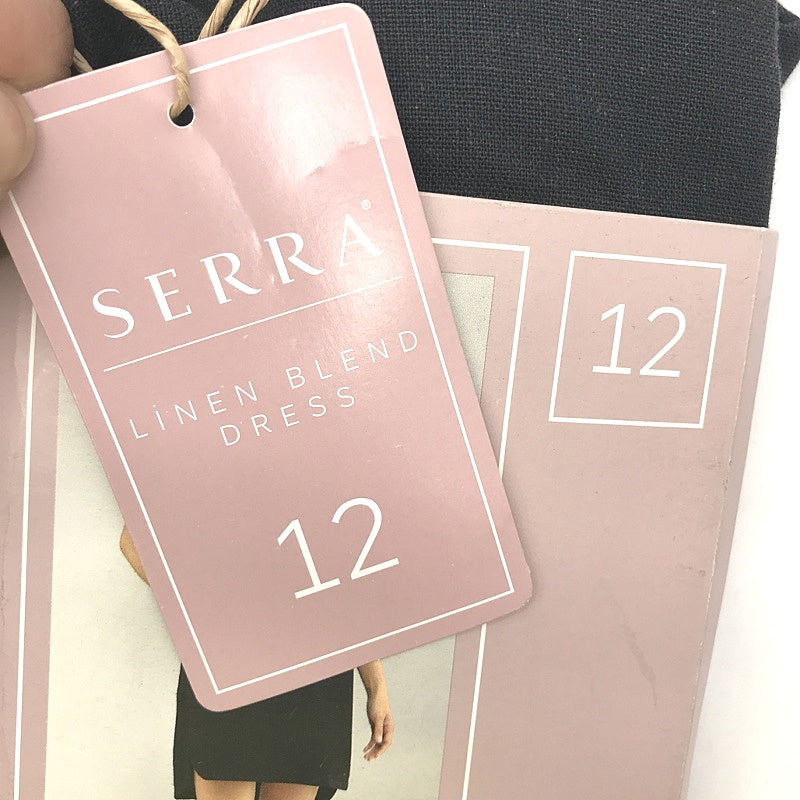 Serra Linen Blend Black Sleeveless V Neck Mid Thigh Dress Ladies NEW