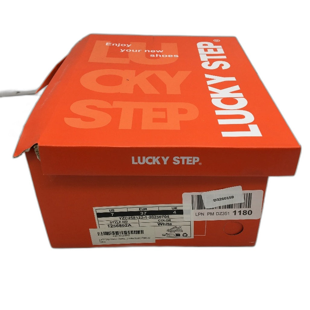 New in box, opened for inspection. Has a stain on the right shoelace.
