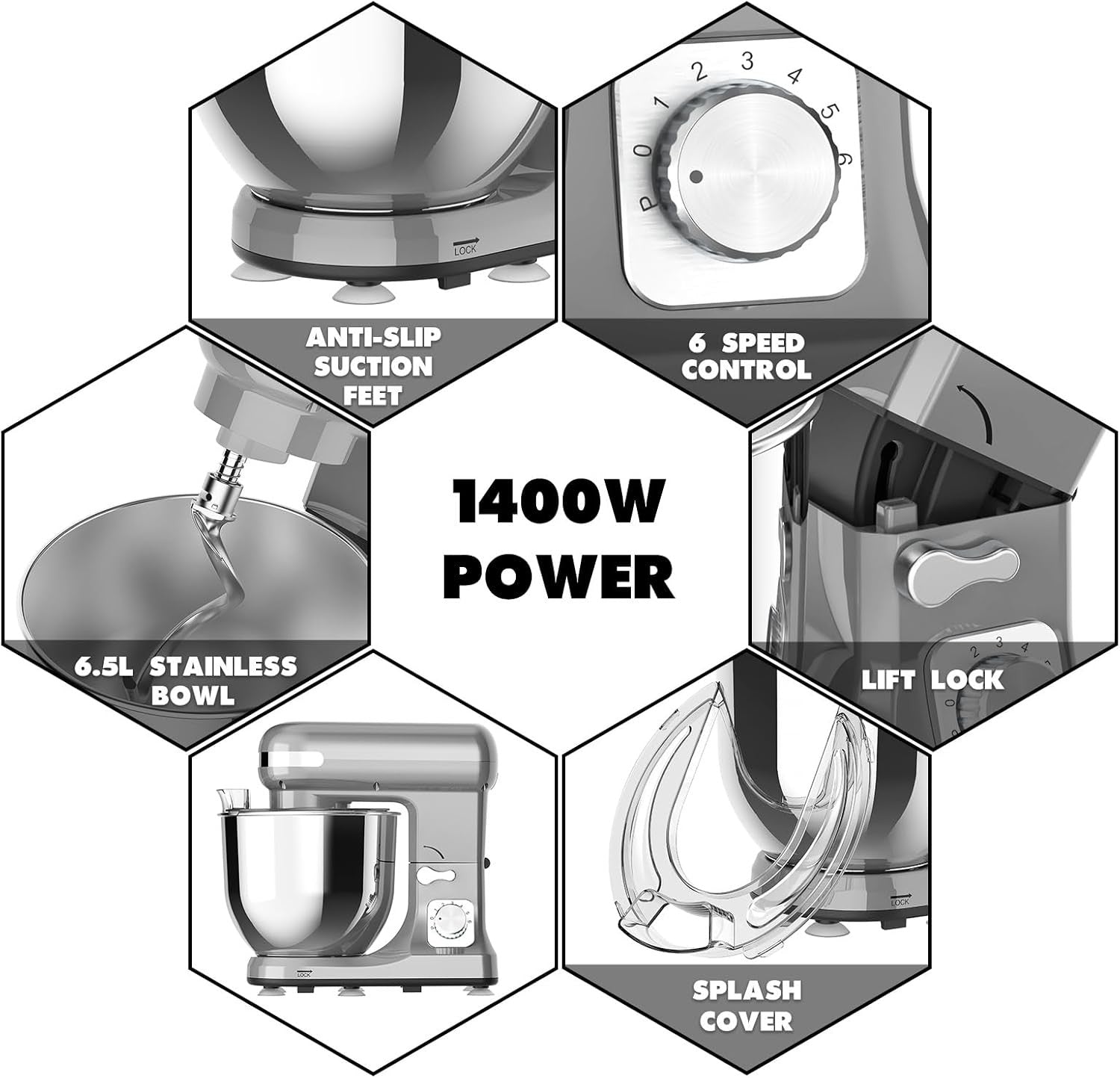 Elevate your home cooking experience with the YOPOWER Stand Mixer, designed to deliver exceptional performance and convenience. This grey electric food mixer is perfect for baking, cake making, and pizza preparation, handling all your food preparation tasks with ease.