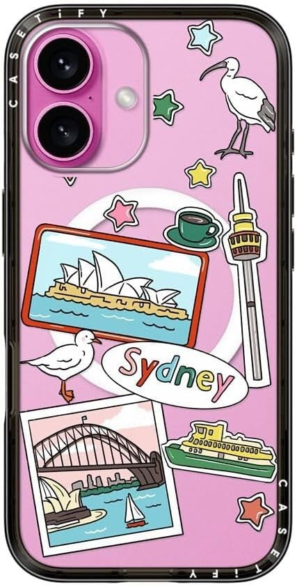 Introducing the CASETiFY Compact iPhone 16 Case, designed for those who appreciate a slim and sleek profile without compromising on protection. This case is perfect for your iPhone 16 (6.1") and features a stylish Sydney Stickers design while ensuring compatibility with Magsafe and wireless charging.