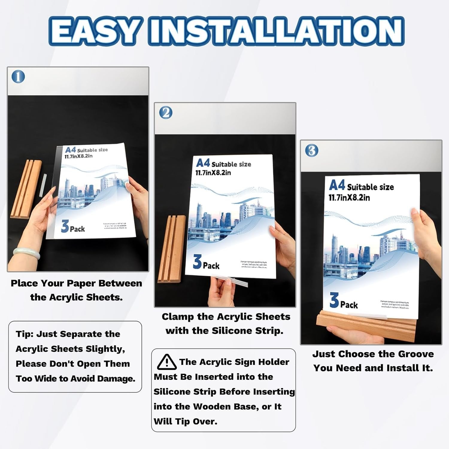 Showcase your signage with the stylish and versatile 3 Pack A4 Acrylic Sign Holder, perfect for weddings, vendor booths, farmer markets, and small business retail displays. Made from highly transparent acrylic, this durable holder ensures your menus and advertisements are presented clearly and attractively.