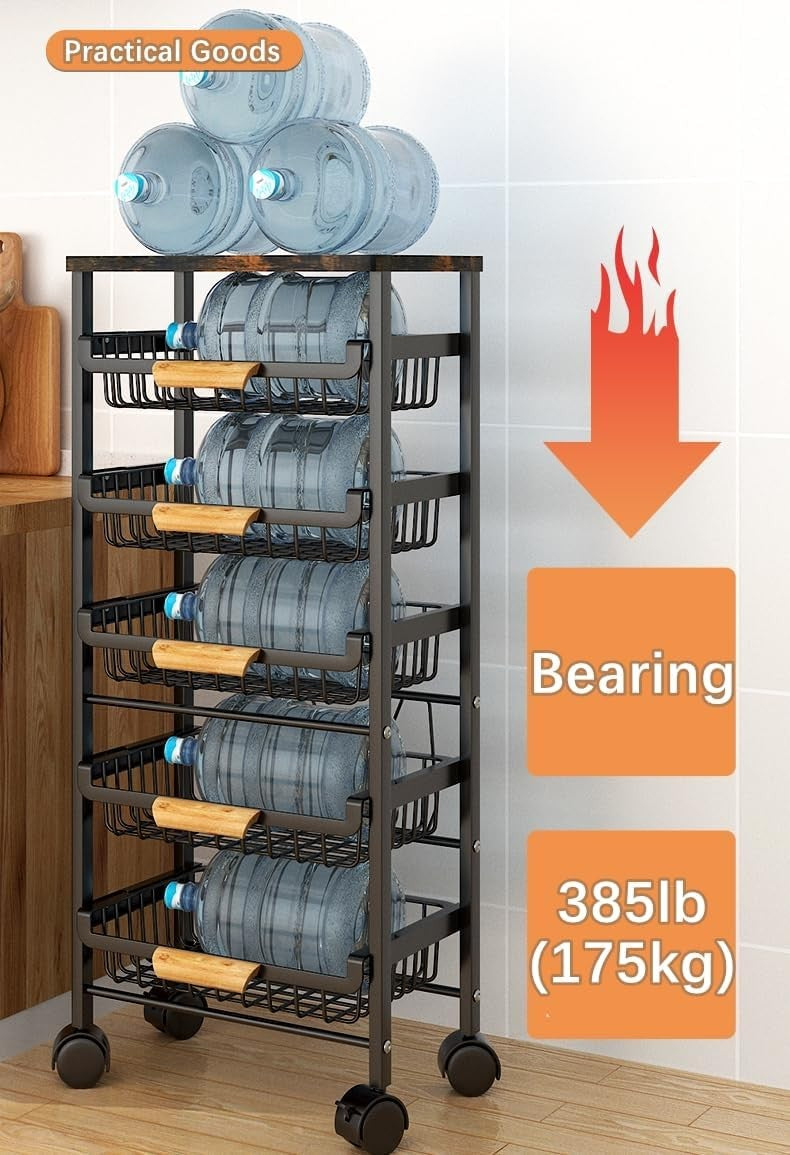 Introducing the 5 Tier Metal Wire Basket Cart on Wheels, a versatile storage solution perfect for your kitchen, living room, bedroom, or bathroom. This cart serves as an efficient fruit and vegetable organizer, snack holder, and toy rack, bringing organization to any space in your home.
