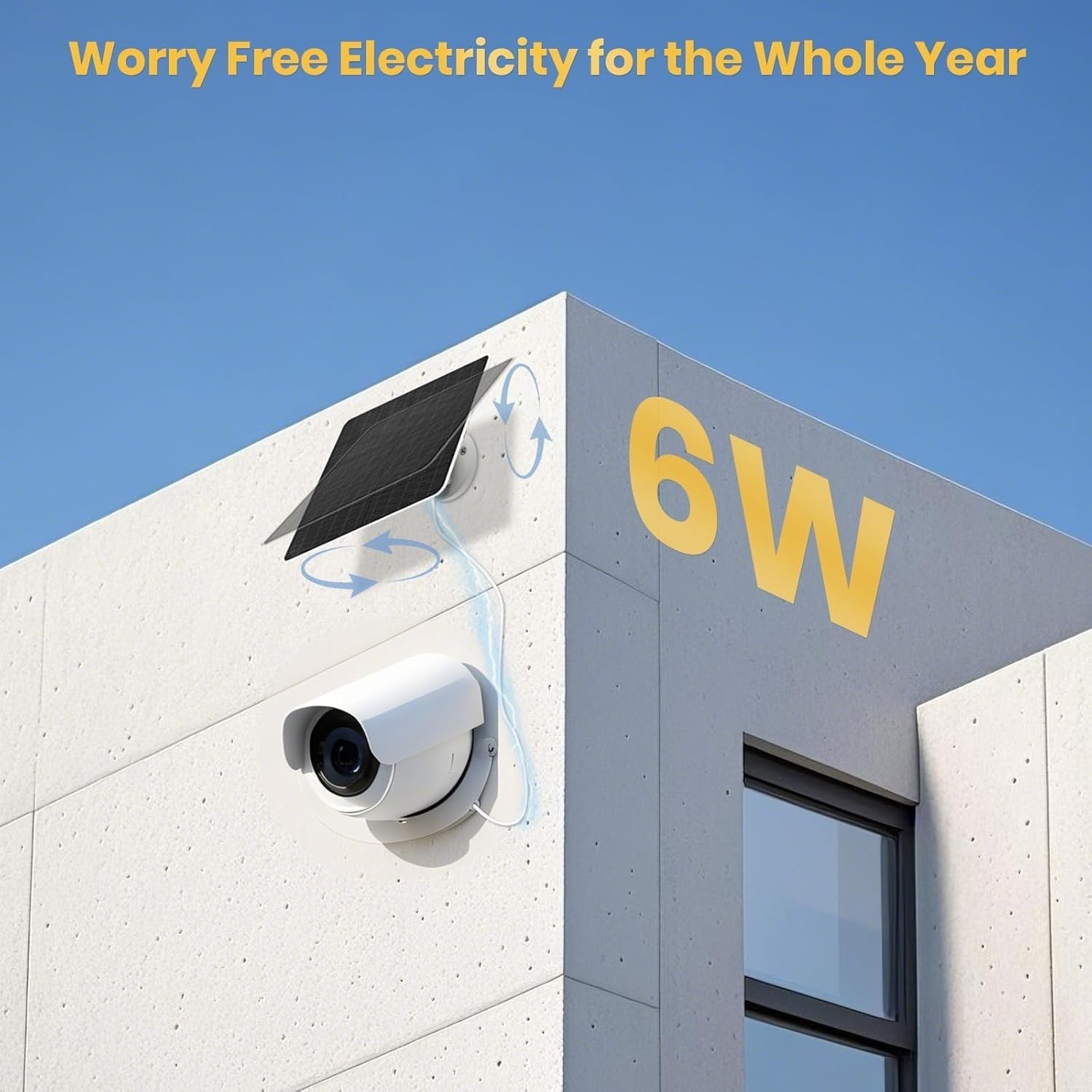 • Efficient solar cells: Our 6W solar panel is composed of high-quality photovoltaic cells, with a conversion efficiency of 24% and an output power of 5V 6W (maximum). A few hours of lighting can allow your camera to charge 24/7, so you can truly eliminate your power outage anxiety with solar panels.