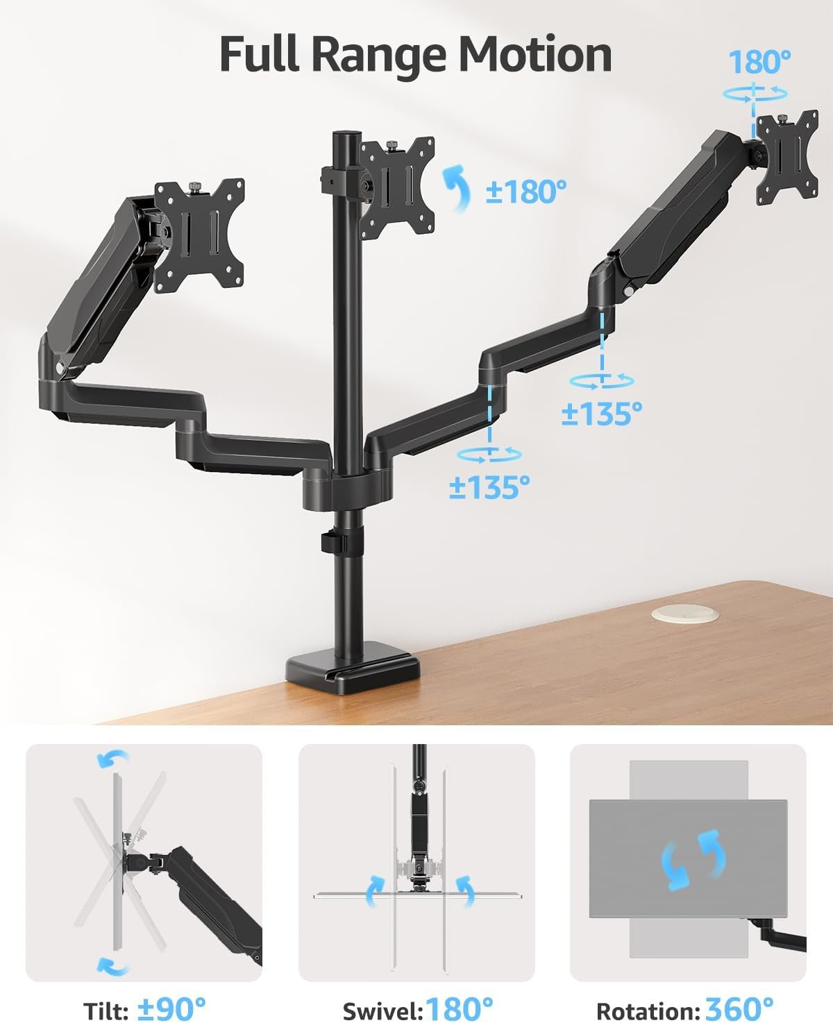 Elevate your workspace with the MOUNTUP Triple Monitor Stand Mount, designed to accommodate up to three computer screens measuring up to 27 inches. This heavy-duty monitor arm provides universal compatibility and a robust solution for creating an organized and efficient setup.