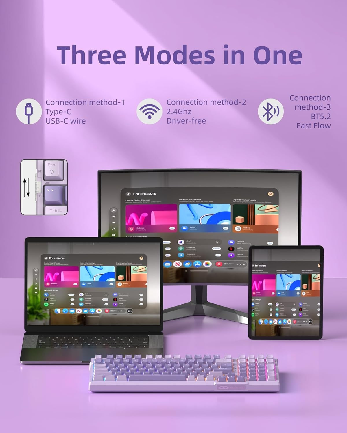 Experience the ultimate in gaming and typing with the MageGee SKY98 Wireless Gasket Mechanical Gaming Keyboard. This 96% hot-swappable keyboard features stunning RGB backlighting and a unique gasket-mounted structure that enhances your gaming experience while saving desktop space.