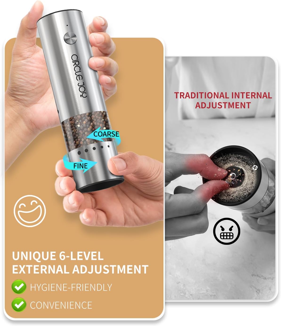 Elevate your culinary experience with the CIRCLE JOY KYMQ-82A-BS-SL Salt & Pepper Mill Sets. Crafted from durable stainless steel, this versatile grinder set delivers fresh-ground flavor wherever your day takes you. With its compact, pack-friendly design and USB-C charging, you can enjoy restaurant-quality seasoning at home or on the go.