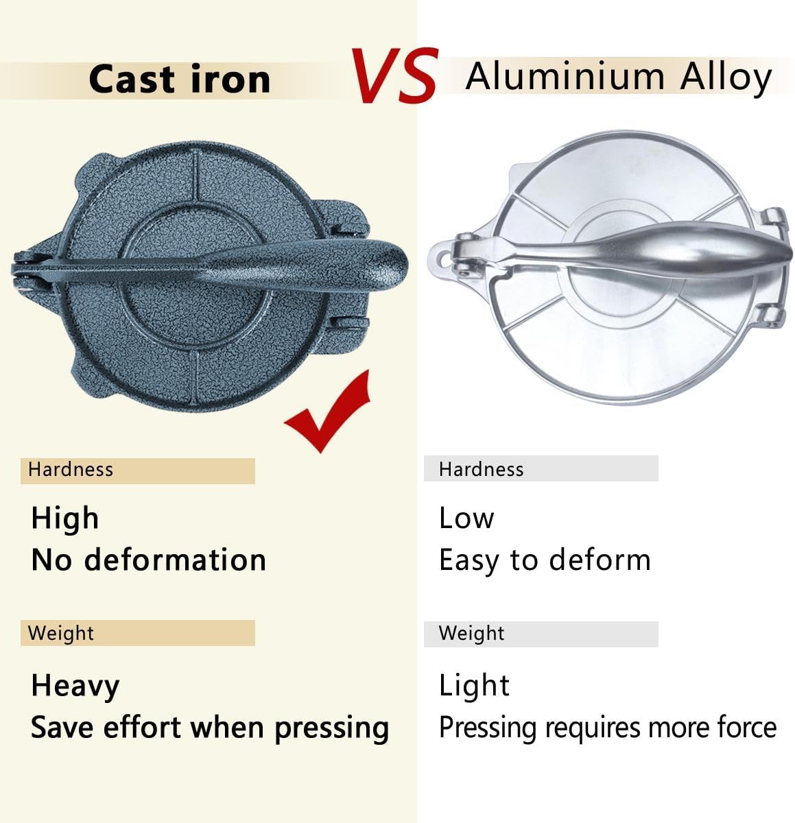 Elevate your culinary creations with the ViviCreate 8" Cast Iron Tortilla Press. Crafted from durable cast iron, this versatile kitchen essential allows you to effortlessly press and shape a variety of doughs, from corn and flour tortillas to empanadas, tostones, and more.
