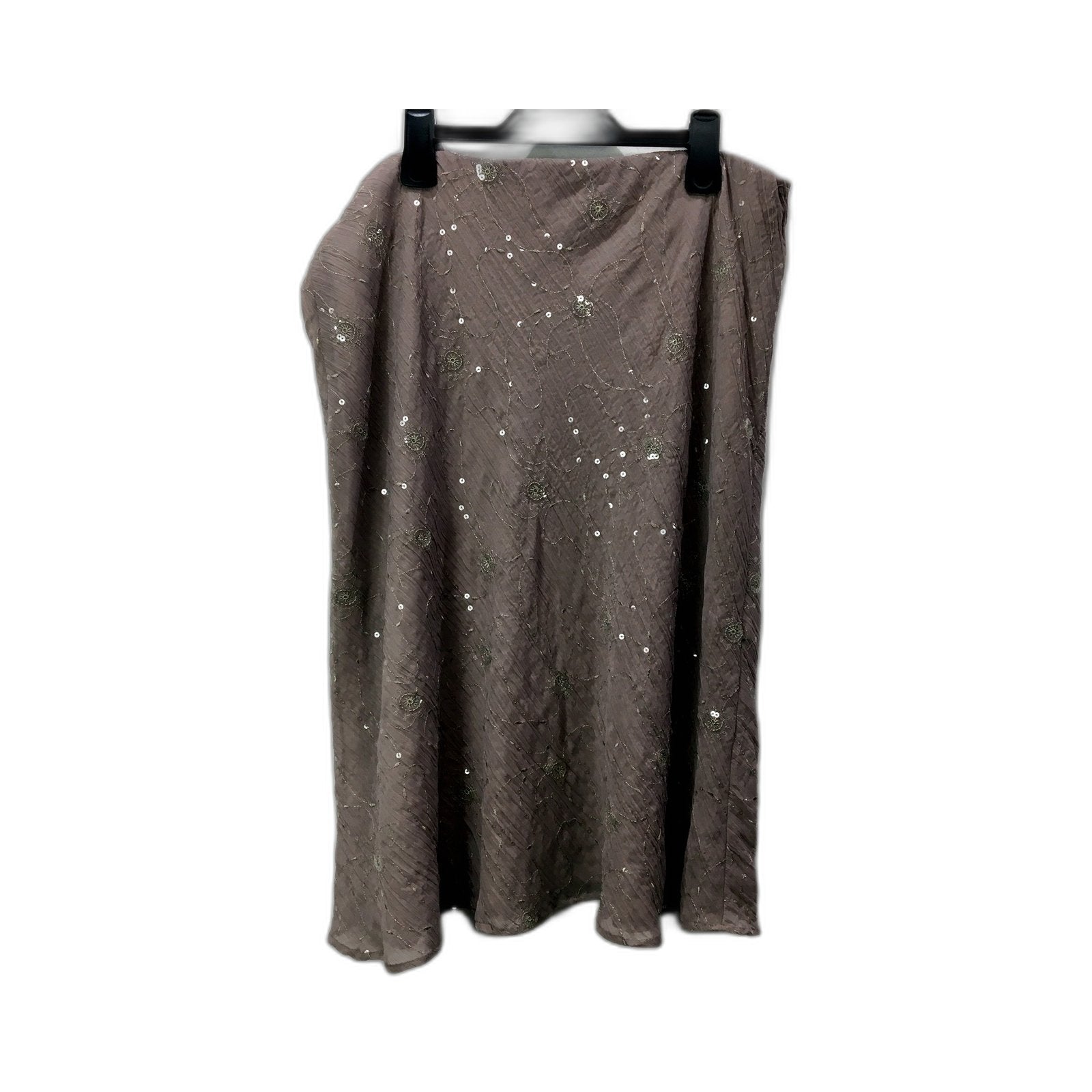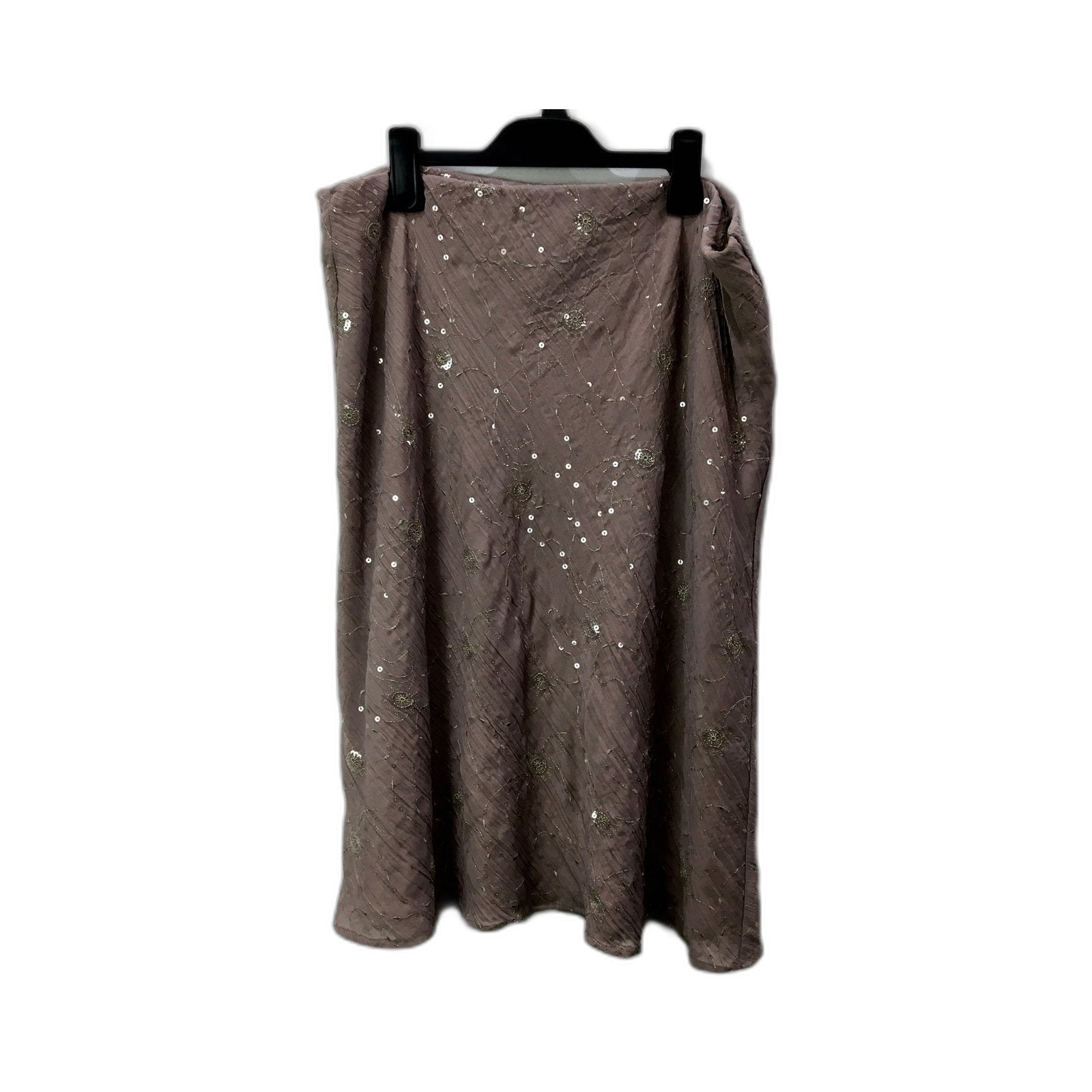 Elevate your formal style with the captivating Noni Sequin Flared Midi Skirt in a rich brown hue.