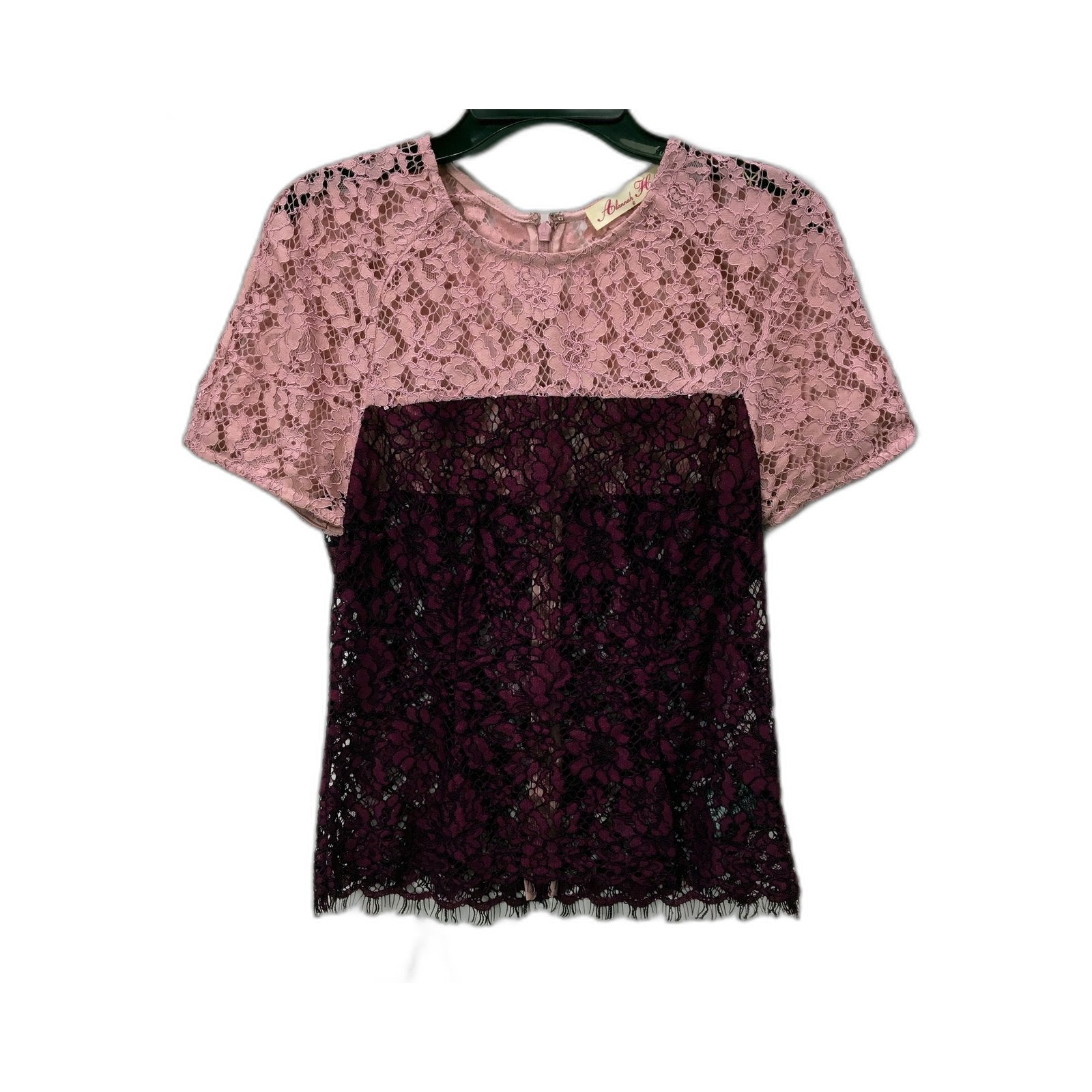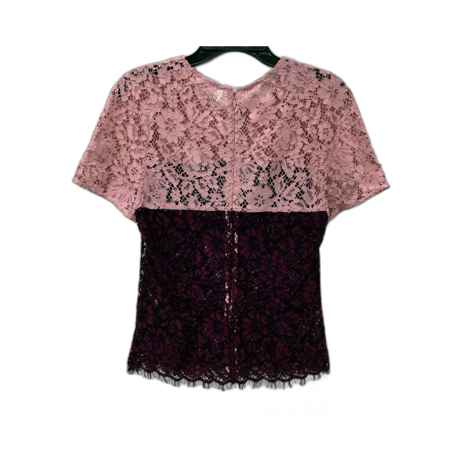 Elevate your style with this stunning Alannah Hill lace blouse in a captivating pink and burgundy hue.
