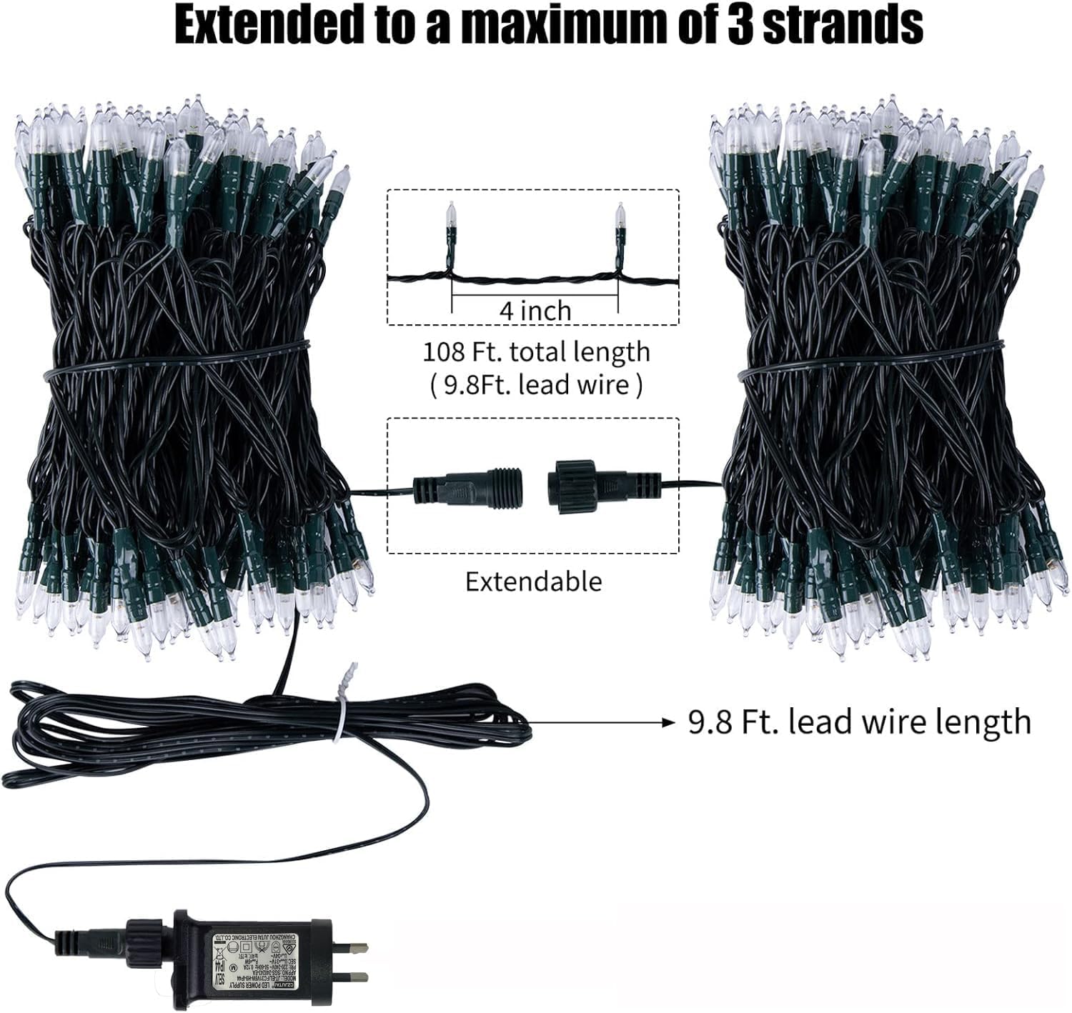 Elevate your home decor with the JT-EL/FC31V6W-H9-IP44 String Lights. These 108ft Warm White lights are the perfect addition to any space, creating a cozy and inviting ambiance with their soft, energy-efficient glow.