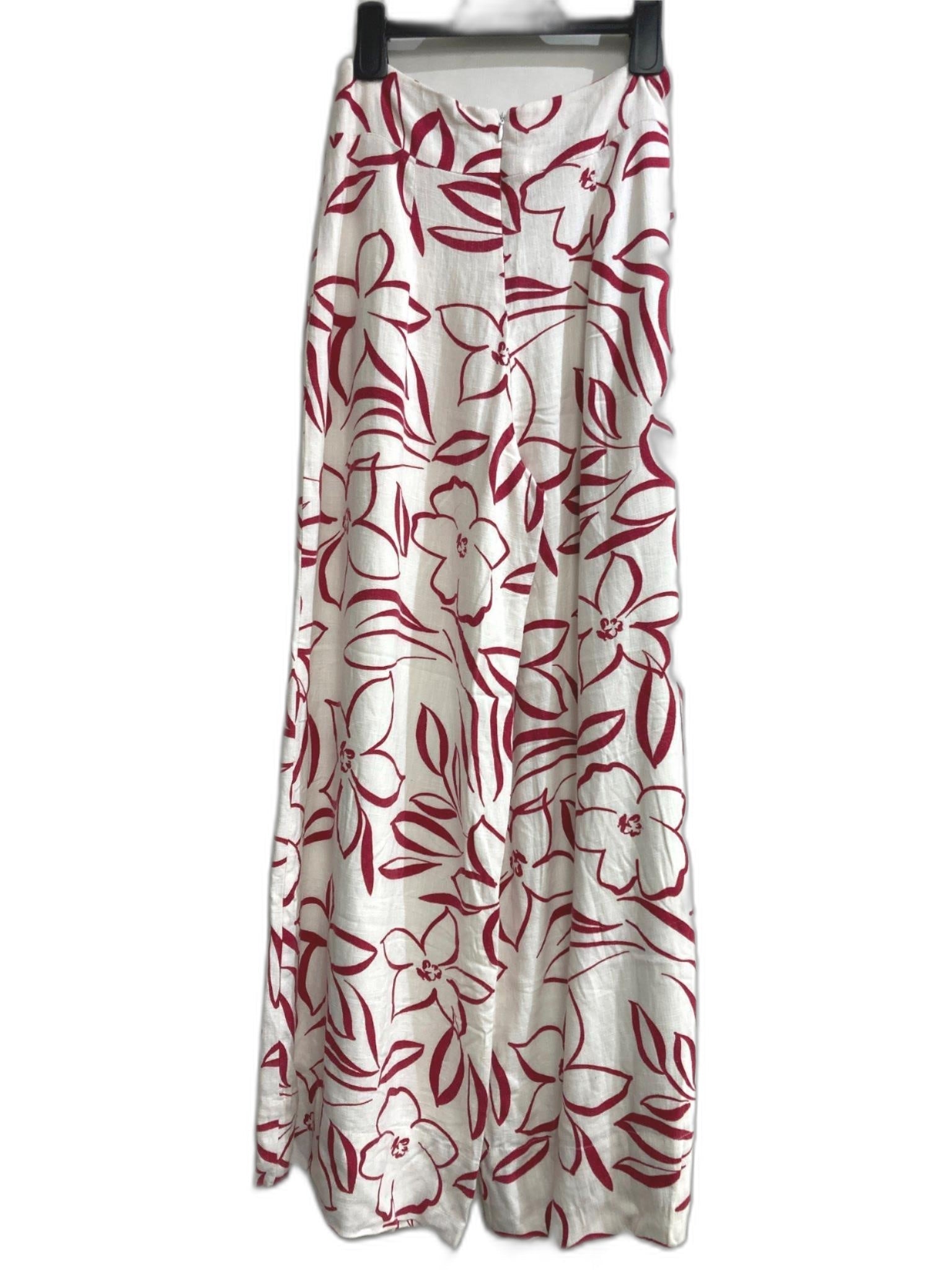 - Floral Sketch Pattern Wide Leg Trousers White Ladies Sz 10 *De-Tag NEW
